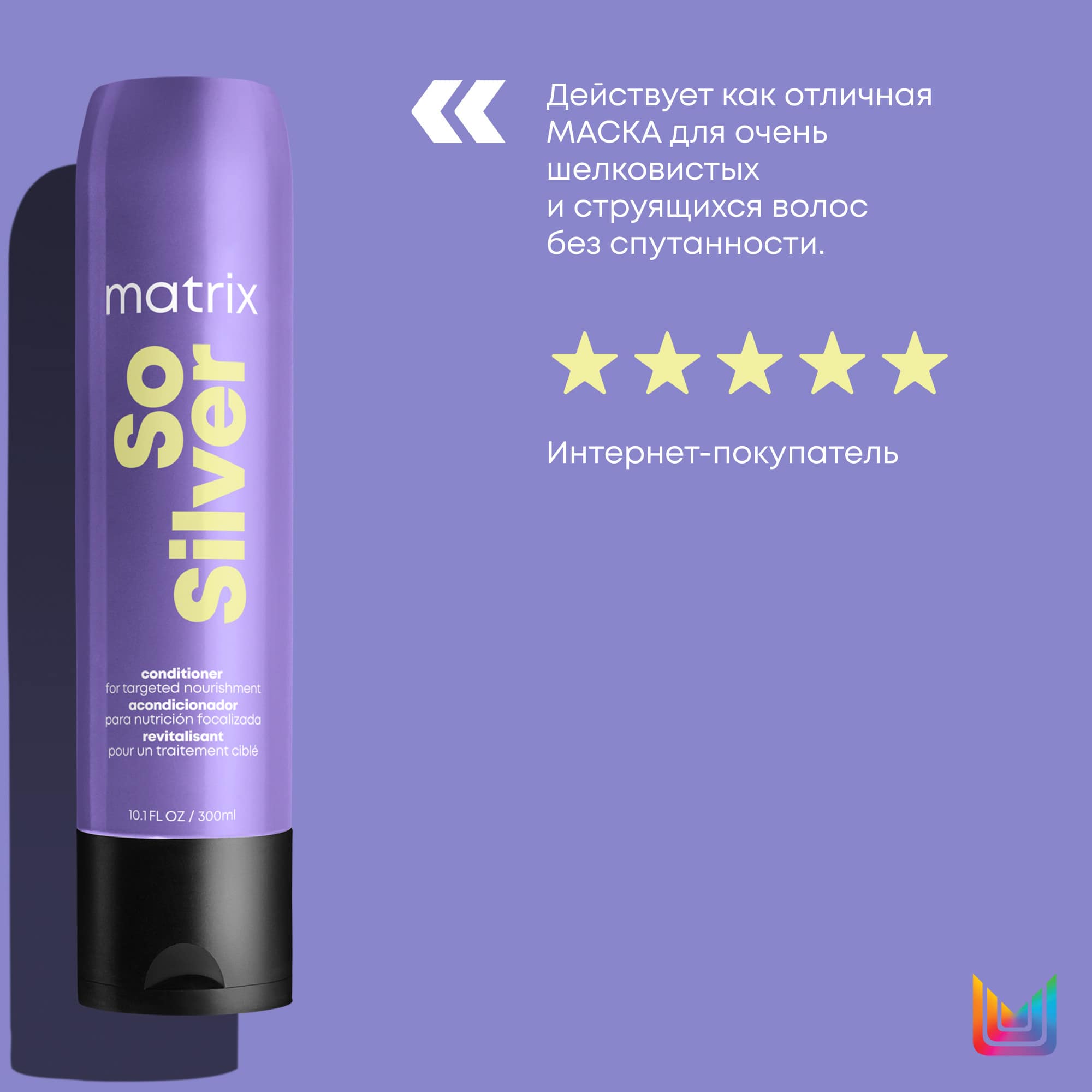 Нанести на влажные волосы после использования шампуня. Помассировать. Смыть водой. Уложить волосы. При попадании в глаза немедленно промыть их водой. Рекомендуется использовать вместе с шампунем Total Results So Silver.