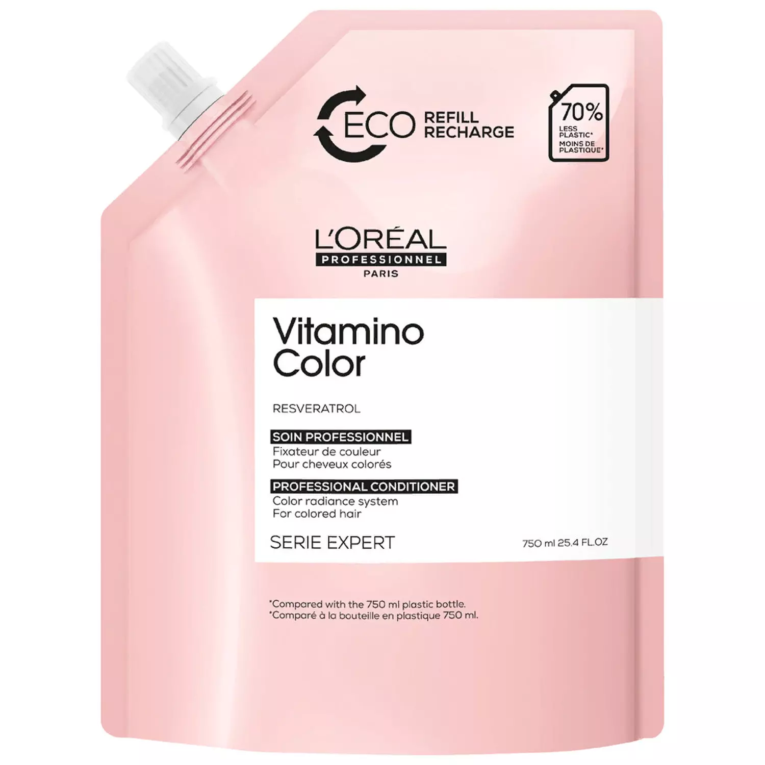 Впервые доступен в экологичном рефил-формате, в котором используется на 70% меньше пластика по сравнению с оригинальной упаковкой. Формула, обогащенная ресвератролом, защищает цвет окрашенных волос от вымывания до 8 недель*, а также волокно волоса от внешних повреждений для сохранения результата салонного окрашивания. Мгновенно увлажняет, делая волосы мягкими, сияющими и защищенными от корней до самых кончиков.