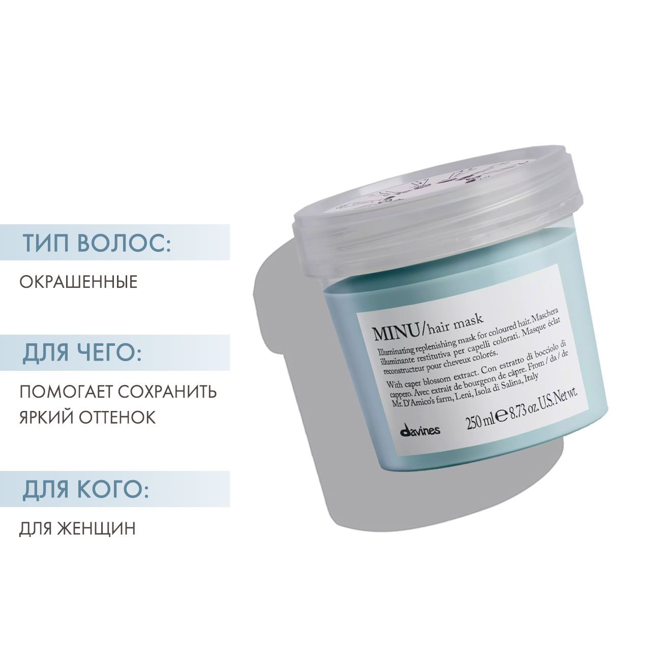 Средство входит в Программы ухода для окрашенных волос Davines Minu с выгодой: