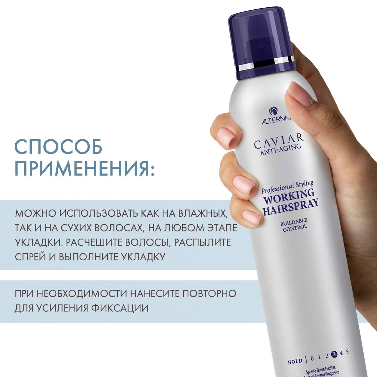 Используйте на любом этапе укладки. На влажные волосы - при распределении оптимального количества лака создается необходимая плотность и сцепление с щетками. Расчешите волосы и выполняйте укладку. Нанесите повторно продукт для усиления степени фиксации на сухие волосы. Также лак можно использовать перед укладкой горячими инструментами для лучшей фиксации.