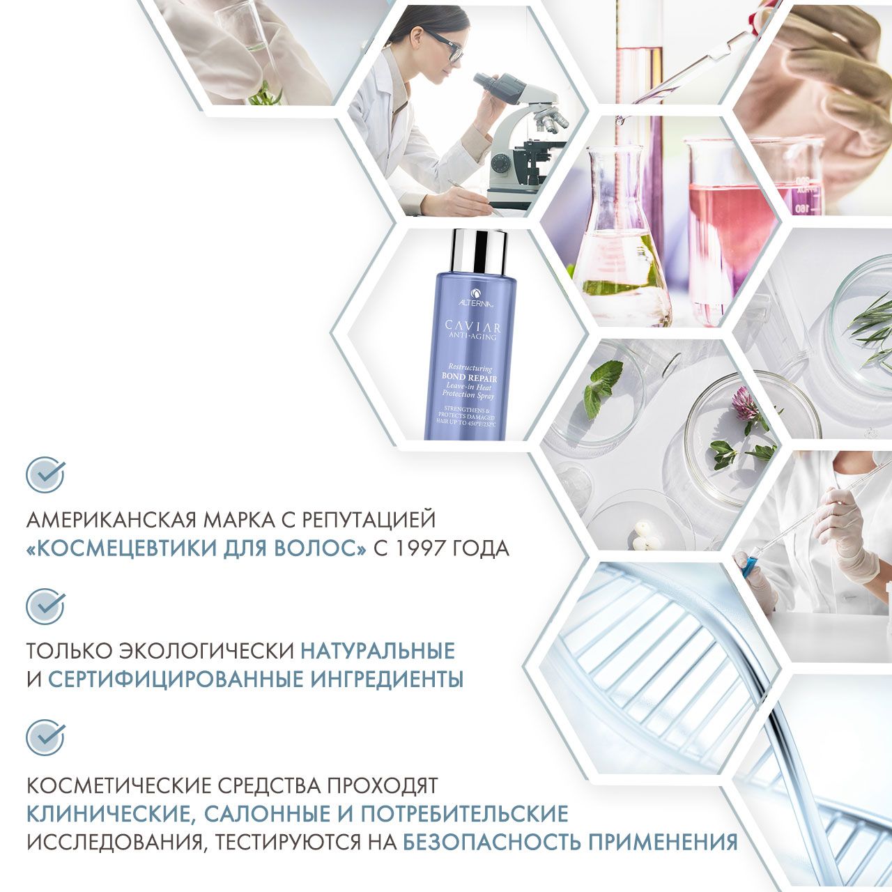 Клинически доказано восстановление повреждений и секущихся кончиков до 99% после применения средств линии Caviar Anti-Aging Restructuring Bond.