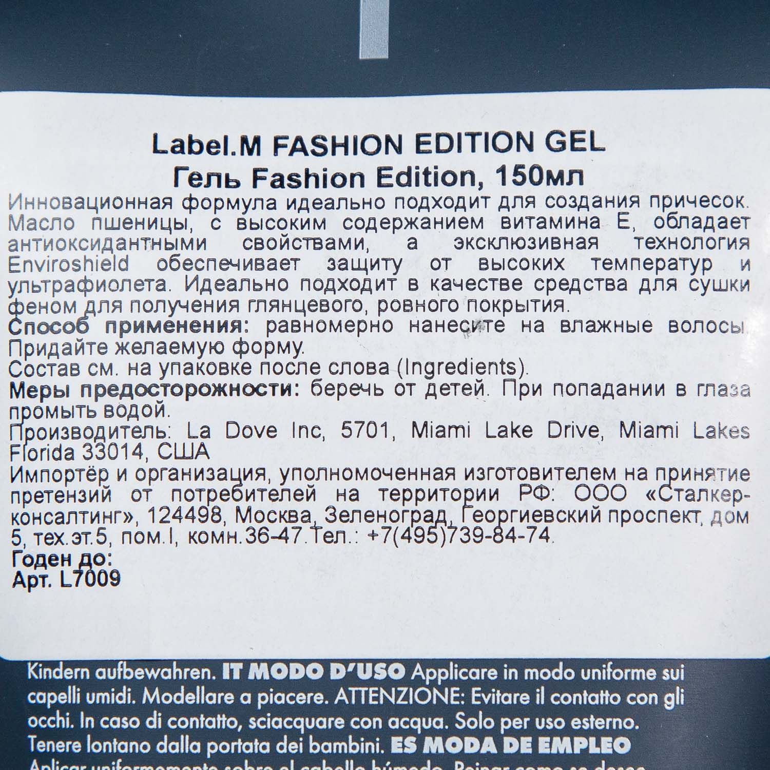 Гель Label.M Fashion Edition позволяет легко создавать прически средней фиксации c гладким глянцевым финишем. Идеально подходит для использования в качестве средства для сушки феном и обеспечивает стойкий ровный результат.