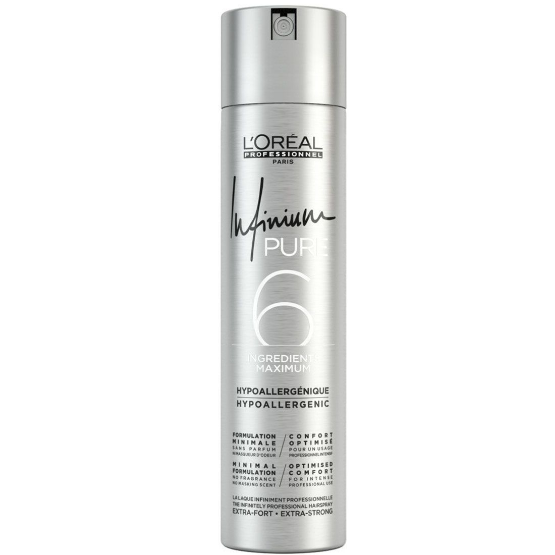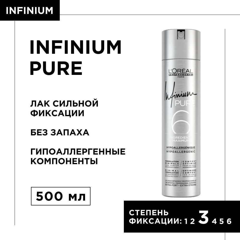 Команда L`Oréal Professionnel в очередной раз сделала невозможное, создав лак без запаха Infinium Pure, который имеет в своем составе всего 6 гипоаллергенных ингредиентов, не вызывающих чувства дискомфорта при работе.