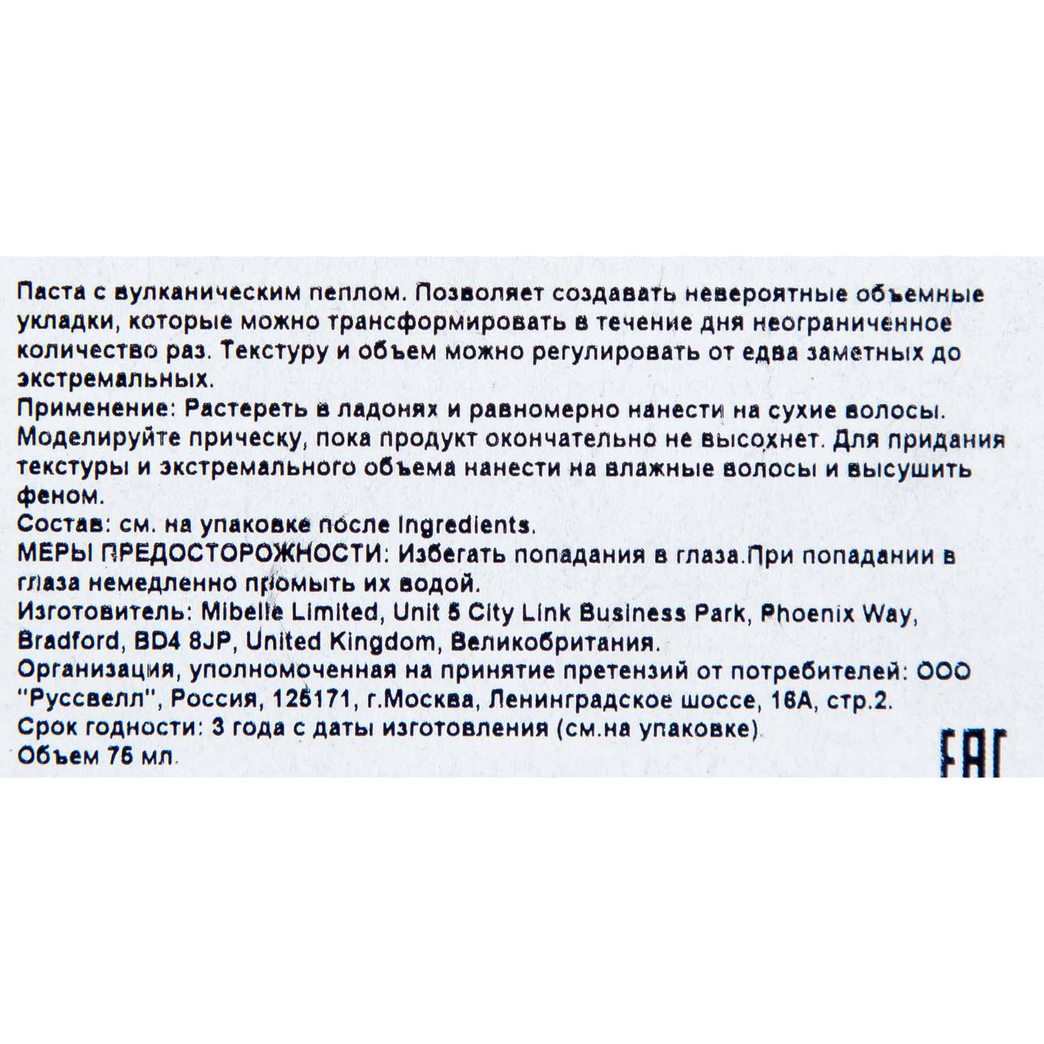 Растереть в ладонях. Энергично распределить по сухим волосам или высушить феном влажные волосы. Добавить второй слой для придания взрывной текстуры.