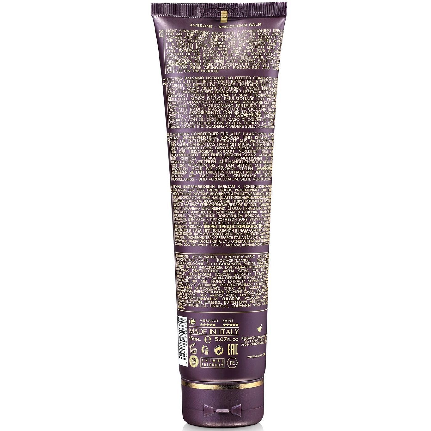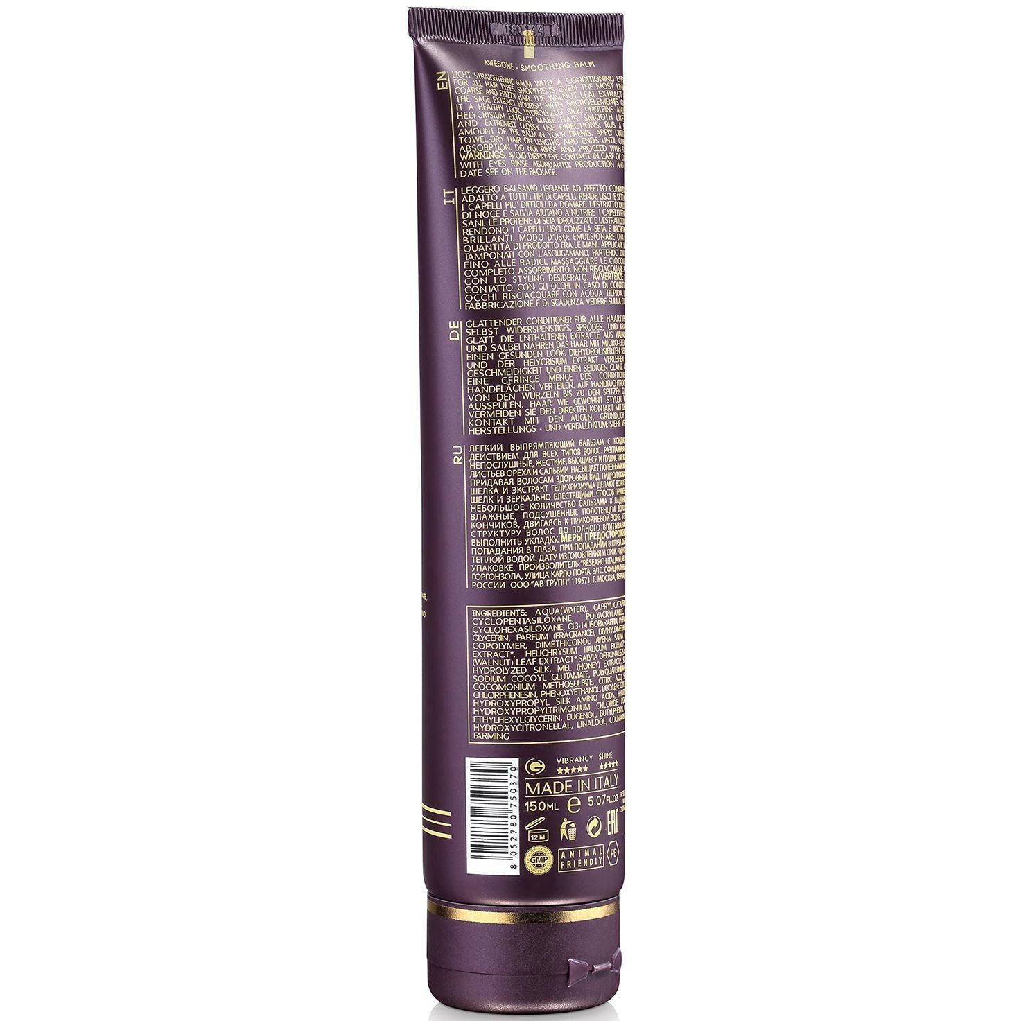 Бальзам Awesome Smoothing Balm - нежный разглаживающий крем для придания блеска и сияния волосам мгновенного действия. Деликатно обволакивает волосы блестящей вуалью, насыщает влагой, смягчает и разглаживает поверхность.