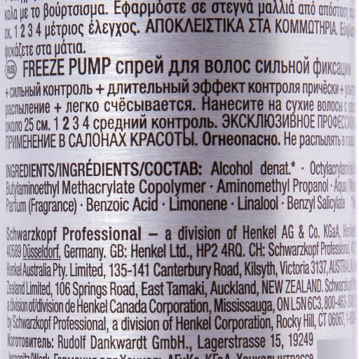 Инновационное средство с ультратонким распылением, даст полный контроль над прической. Состав продукта дополнительно обогащен защитными, увлажняющими и ухаживающими компонентами, которые с каждым использованием продукта улучшают качество локонов.