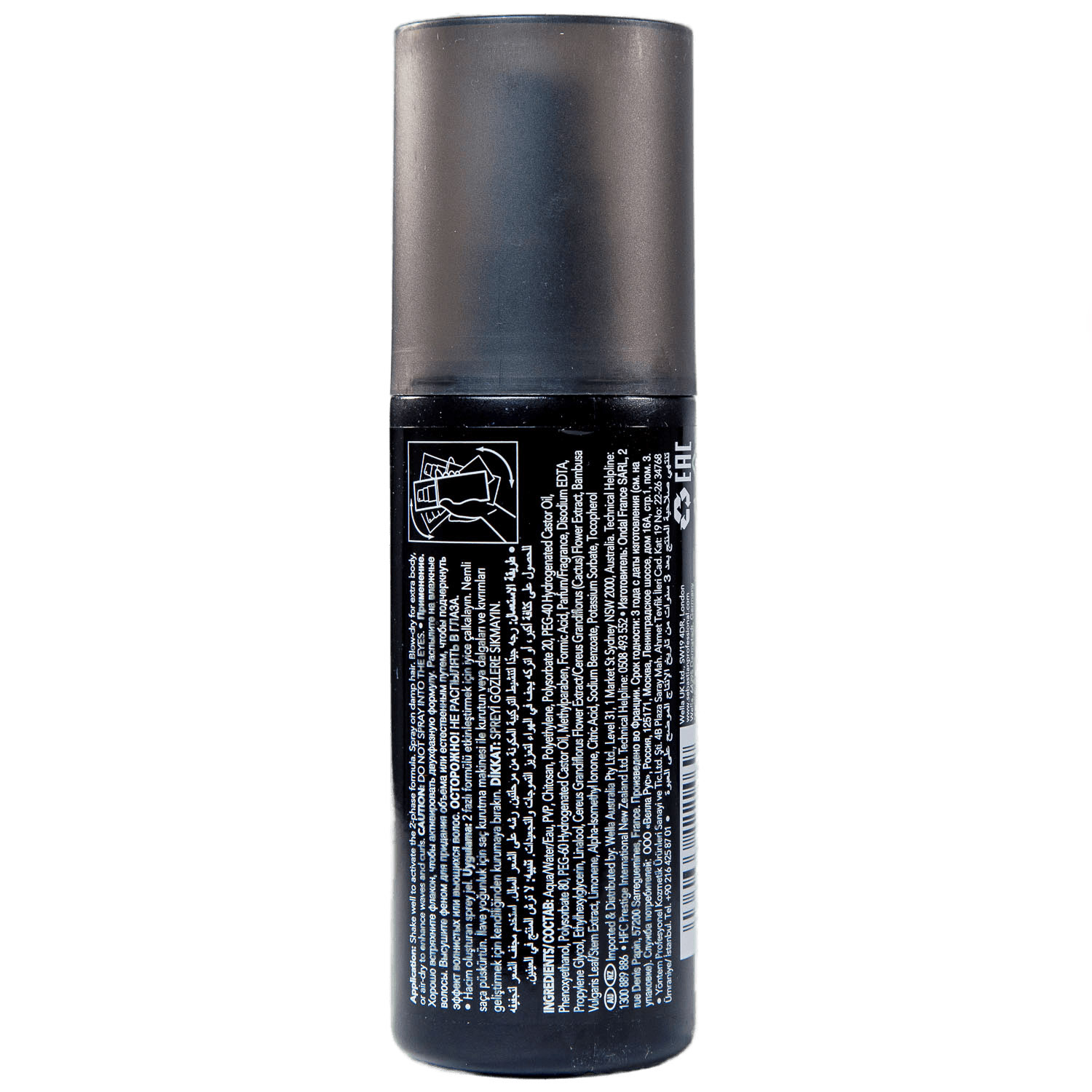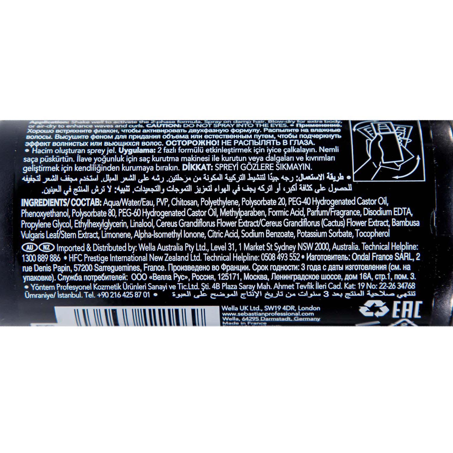 Встряхнуть для активации двухфазного комплекса. Распылить на влажные волосы. Высушить феном для дополнительного объема или естественным путем, чтобы подчеркнуть волны и локоны.