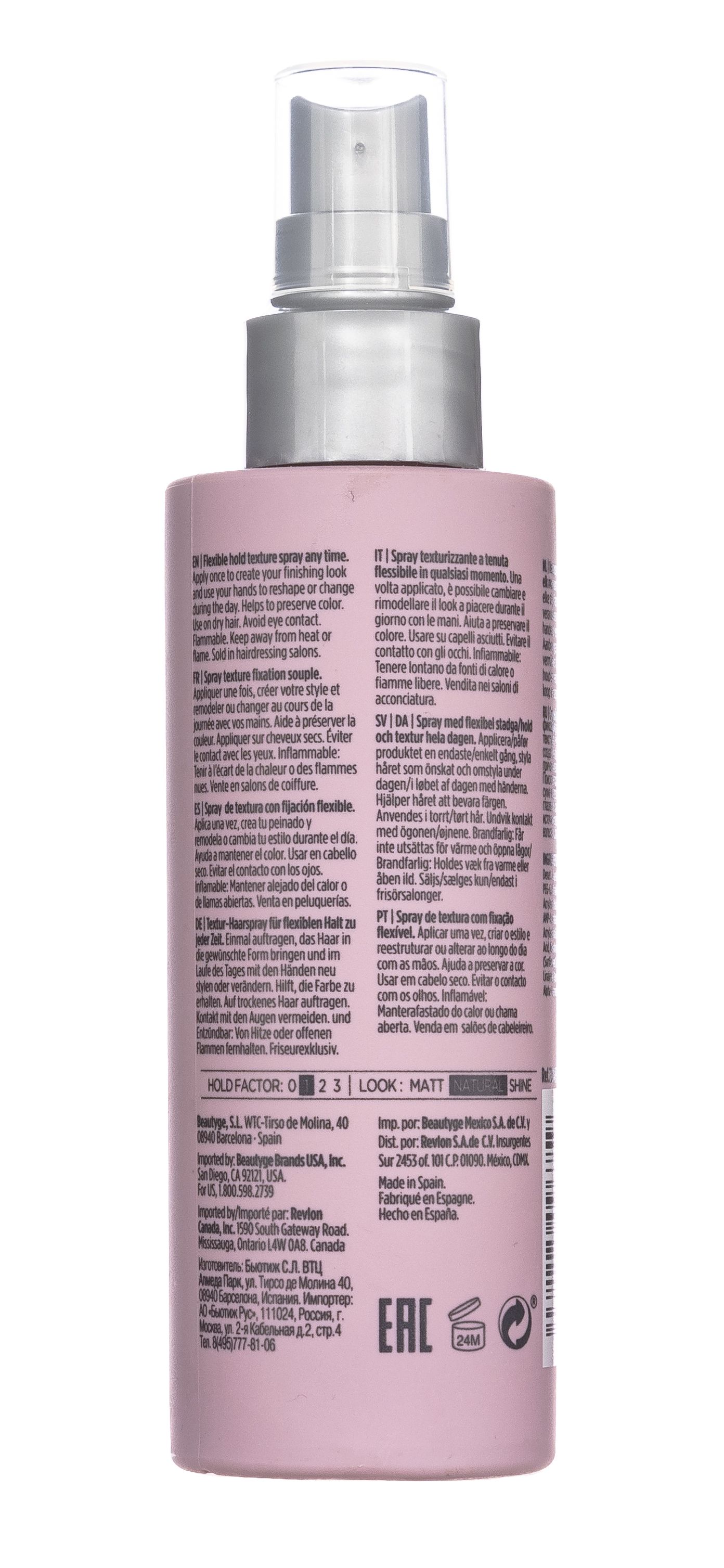 Спрей переменной фиксации для всех типов волос испанского бренда Revlon. Обеспечивает подвижную укладку без утяжеления и склеивания, придает естественный блеск и защищает волосы от неблагоприятного воздействия солнечных лучей. Обладает эффектом памяти и позволяет сохранять прическу на протяжении длительного времени. Необычное сочетание привычных качеств лака для волос и легкой подвижной фиксации текстурирующего воска. Продукт наносится на волосы путем распыления, окутывает их невесомой мягкой поддержкой, позволяет создать образы различной сложности и при желании сменить укладку в любой момент дня.