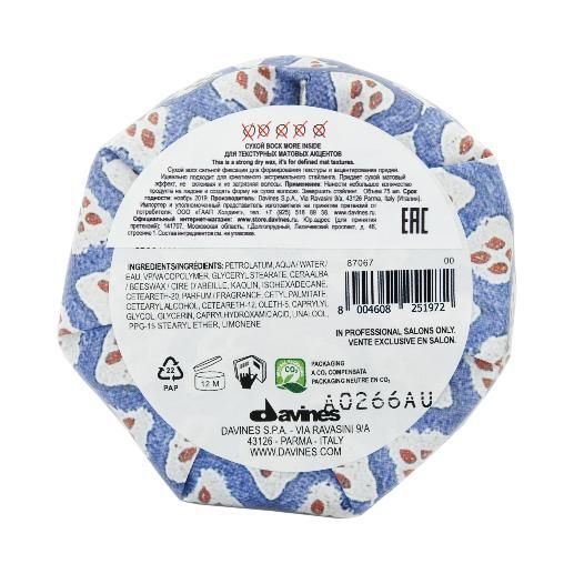 Этот воск просто волшебный! Он создает креативные прически, оставляя волосы матовыми и без бликов. Волосы выглядят так, будто их укладывали профессионалы. Воск легко наносится на сухие волосы, и прядям можно придать любую желаемую форму. Он обладает сильной фиксацией, но при этом не склеивает волосы и не оставляет ощущения тяжести. Я в полном восторге!