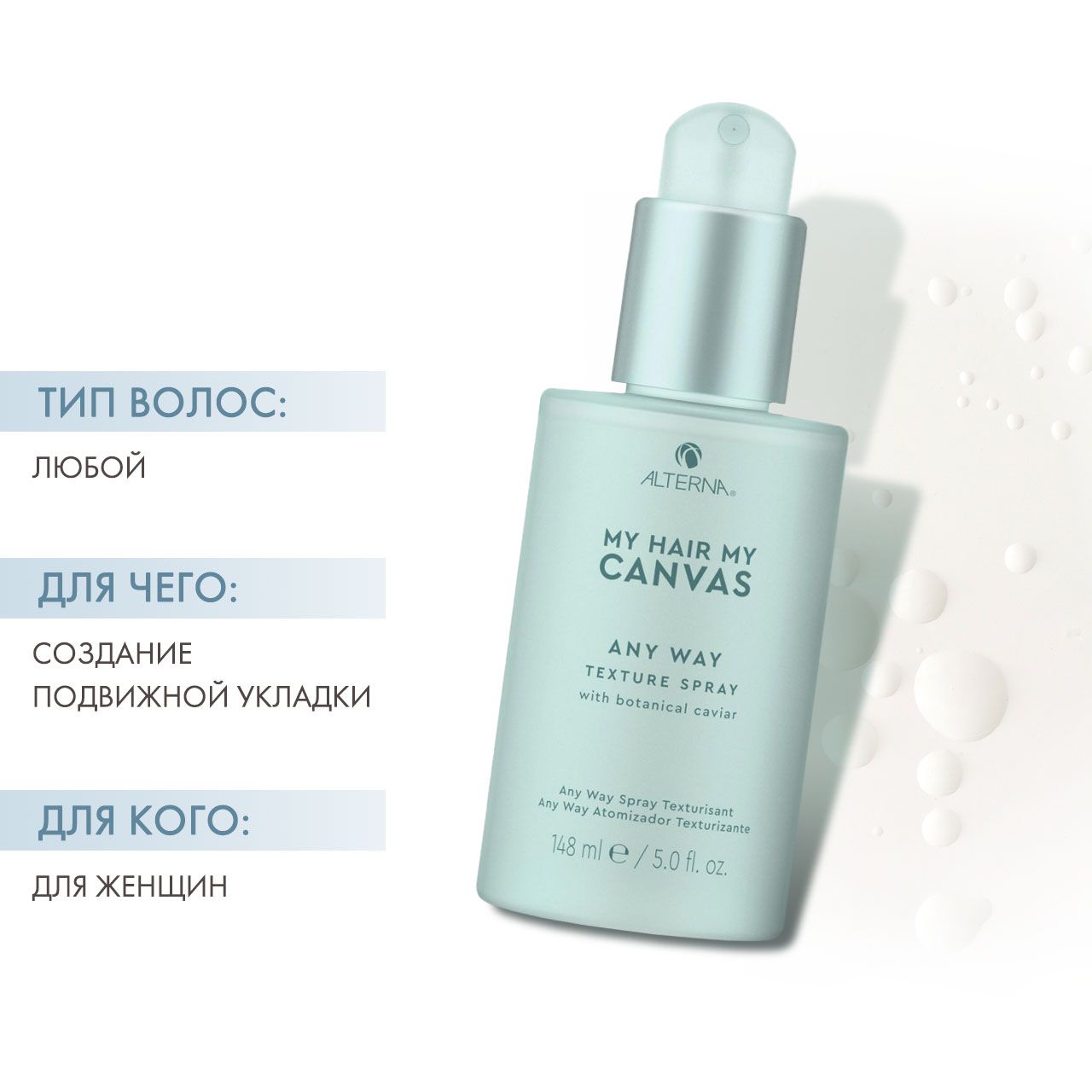 Текстурирующий спрей "Как ни крути" станет заключительном этапом в завершении укладки. Спрей позволяет создавать легкие и естественные локоны без утяжеления. Веганская формула с экстрактом ботанической икры, кокосовым сахаром и белым углем.
