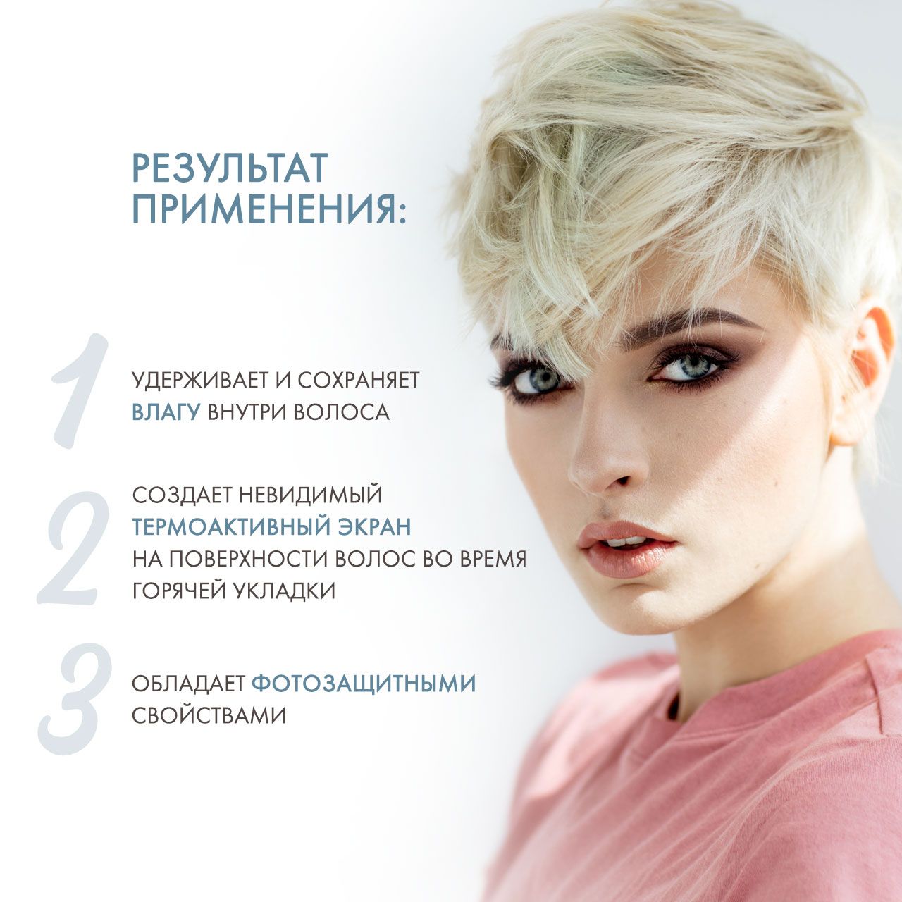 Средство создано для защиты волос перед использованием горячих инструментов. Создает невидимый термоактивный экран на поверхности волос во время горячей укладки.