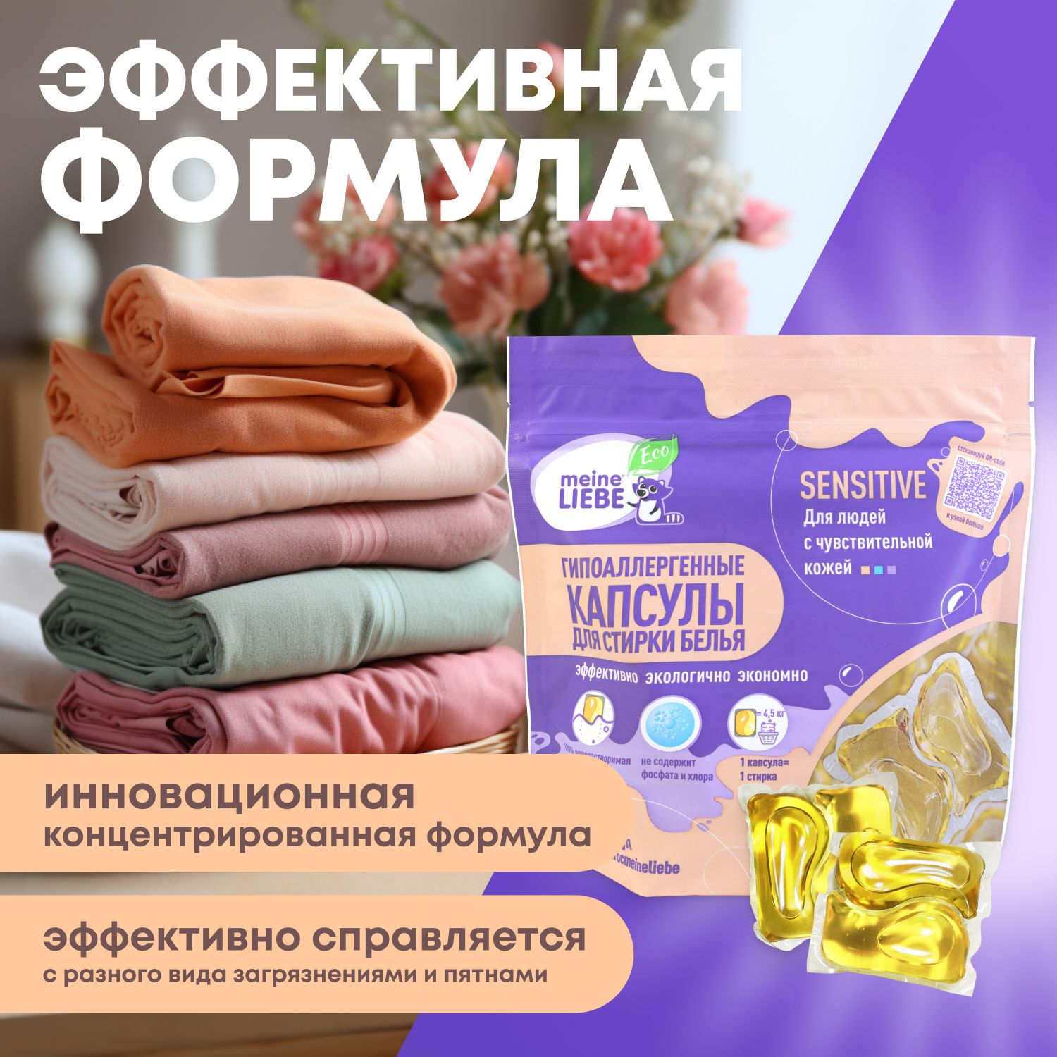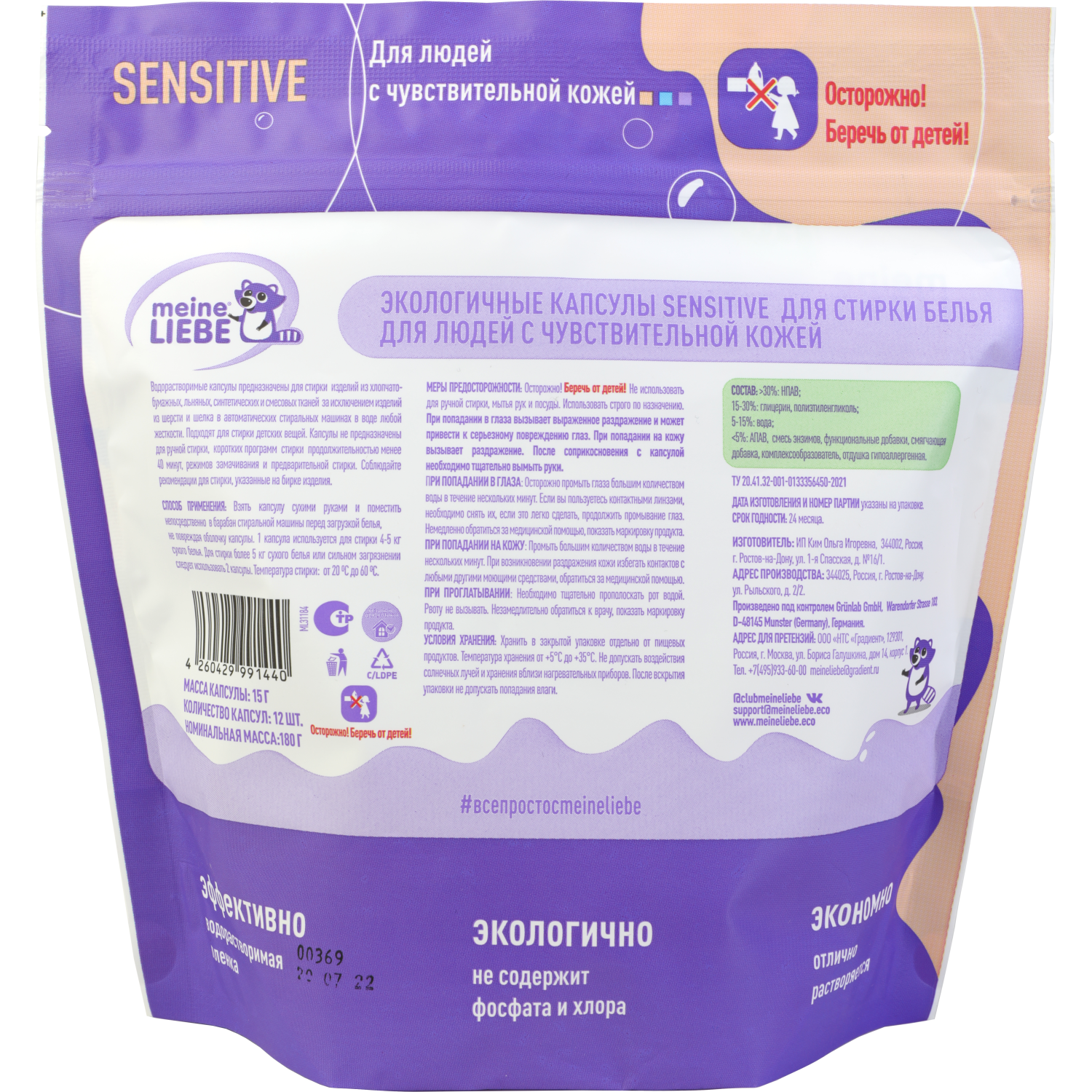 Капсулы не предназначены для ручной стирки, коротких программ продолжительностью менее 40 минут, режимов замачивания и предварительной стирки. Соблюдайте рекомендации, указанные на бирке изделия.