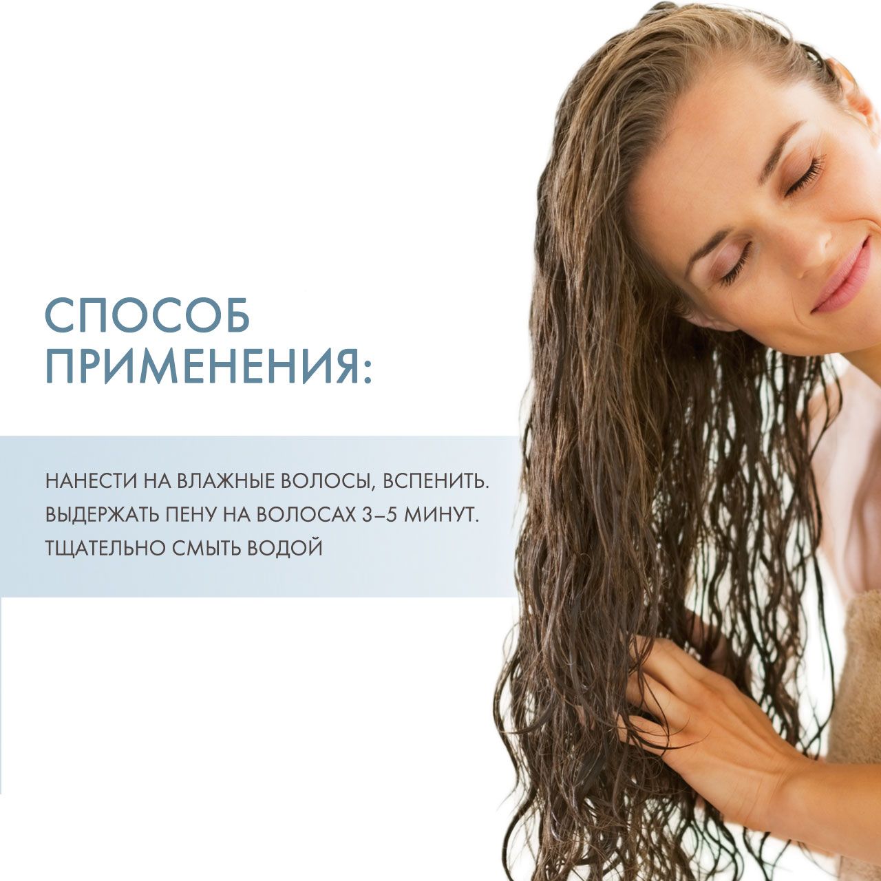 Нанести на влажные волосы, вспенить. Выдержать пену на волосах 3–5 минут. Тщательно смыть водой, при необходимости повторить.Нанести на влажные волосы, вспенить. Выдержать пену на волосах 3–5 минут. Тщательно смыть водой, при необходимости повторить.