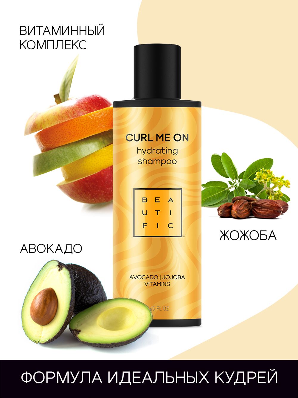 Благодаря специальной формуле шампуня кудри сохранят свой свободолюбивый характер, но при этом получат полноценный уход. Специальная моющая основа обеспечивает мягкое очищение без повреждений. Масла авокадо и жожоба насыщают волосы влагой, уменьшают ломкость и сечение, а также снижают нежелательную пушистость, не утяжеляя локоны. Комплекс витаминов укрепляет волосы, делает их упругими, предупреждает истончение волоса.