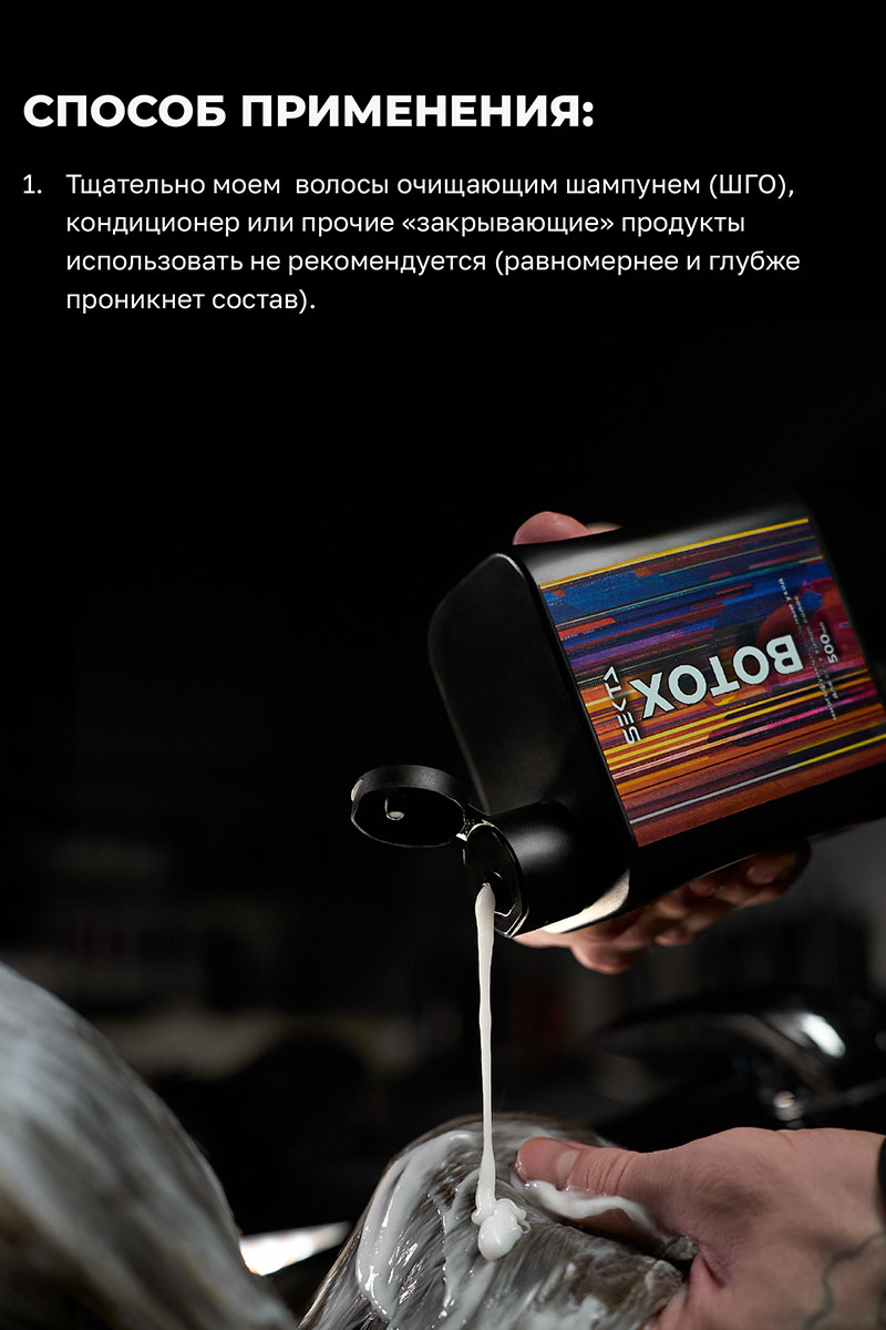 Подготовка волос: тщательно вымойте волосы с помощью очищающего шампуня. Использование кондиционера или других продуктов для «закрытия» пор не рекомендуется, чтобы состав мог глубже проникнуть в структуру волос. После мытья высушите волосы феном до 70-90% влажности.