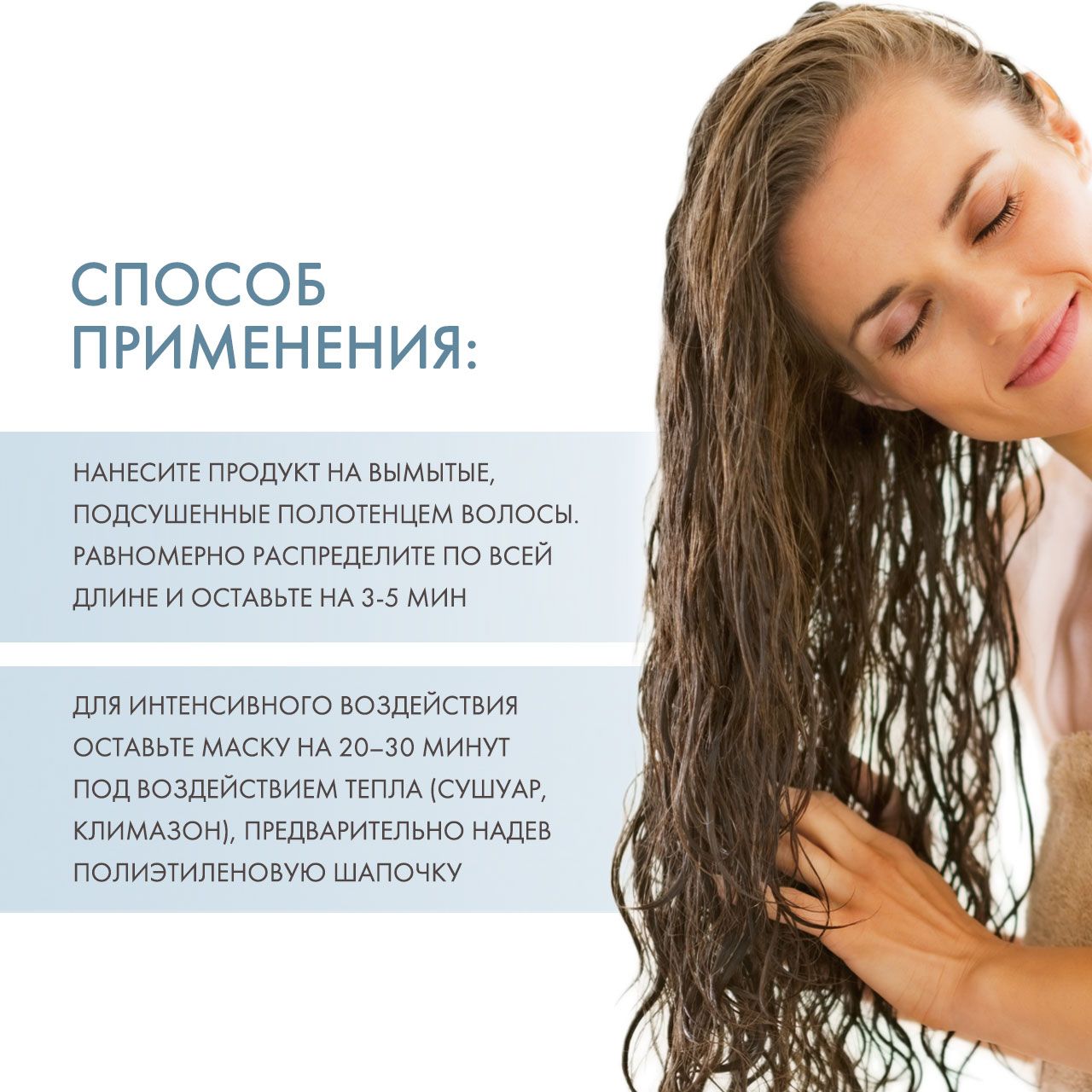 Нанесите необходимое количество продукта на ладони через мерную ложку. Нанесите продукт на вымытые, подсушенные полотенцем волосы. Равномерно распределите по всей длине и оставьте на 3-5 мин.