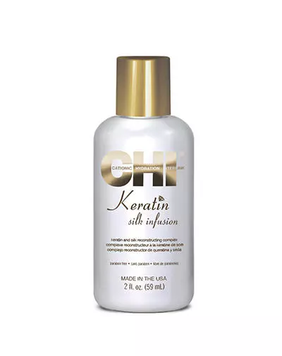 Мощный восстанавливающий комплекс. Уникальное соединение в составе значительно улучшает эластичность, предотвращая хрупкость волос. Натуральный кератин восстанавливает кутикулу волос, молекулы шелка проникают вглубь для сохранения необходимого уровня влаги.