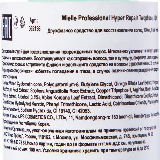 Двухфазный спрей для восстановления поврежденных волос. Мгновенно увлажняет и питает, делает волосы гладкими и шелковистыми. Восстанавливает как стержень волоса, так и кутикулу, сохраняет цвет окрашенных волос.