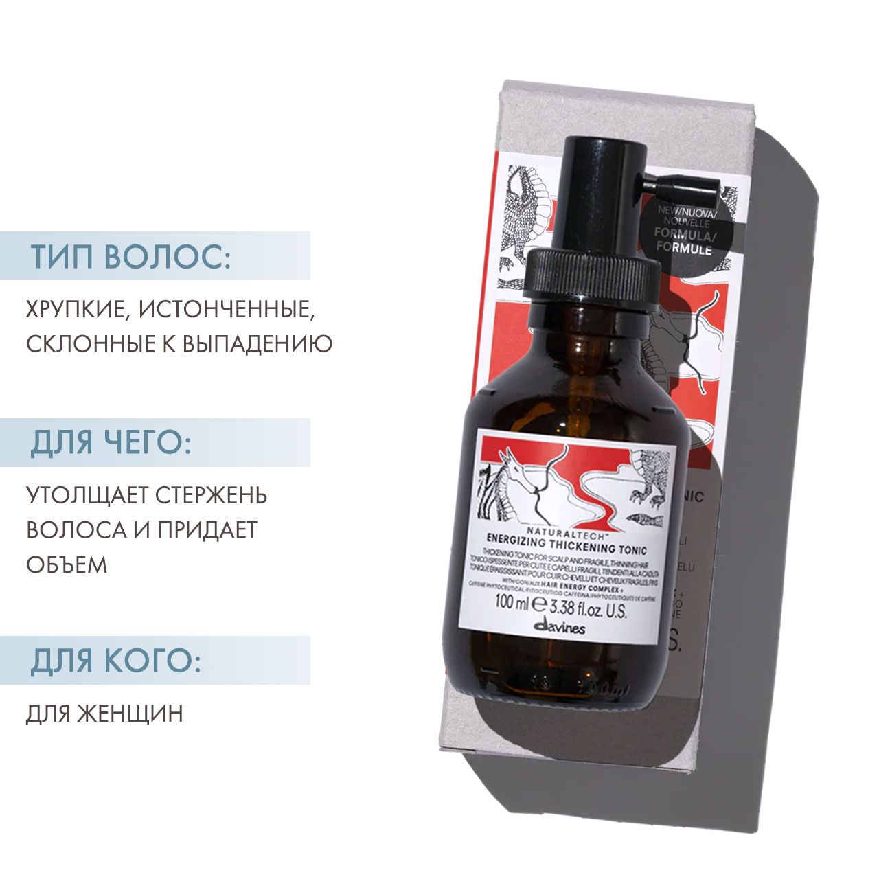Энергетический утолщающий тоник эффективно ухаживает за хрупкими истонченными волосами, склонными к выпадению.