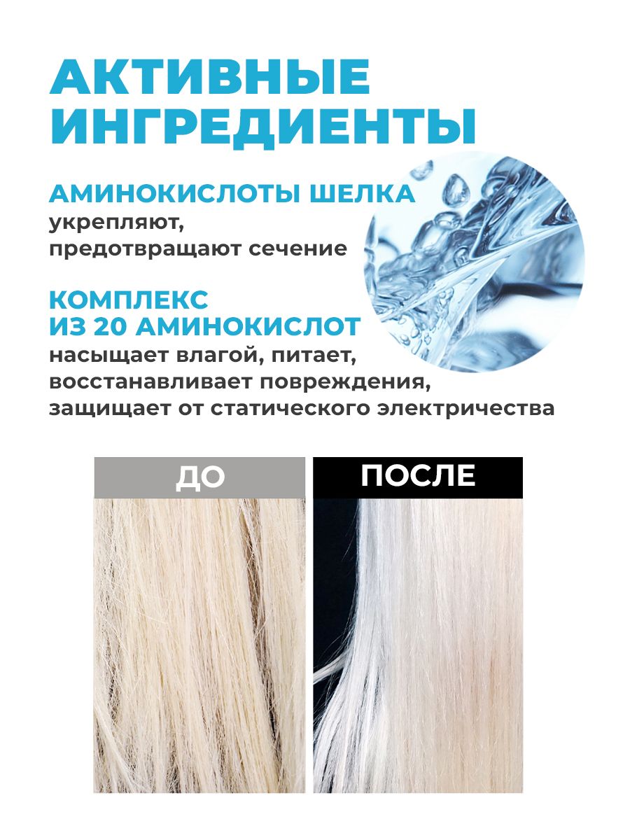 - комплекс с 20-ю аминокислотами - обеспечивает глубокое насыщение волос необходимой влагой и ее сохранение в структуре, питание, восстановление поврежденных участков волос и защиту от статического электричества