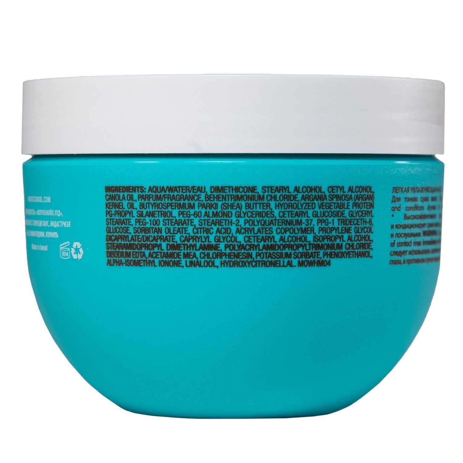 Оживление, преображение и глубокое восстановление сухих тонких волос всего за 5 минут. Легкая увлажняющая маска Moroccanoil обеспечивает высокоэффективное, насыщенное кондиционирование и оздоровление ослабленных волос, требующих деликатного ухода. Ее невесомая формула, насыщенная богатым антиоксидантами маслом арганы и питательными компонентами, увлажняет и одновременно улучшает текстуру волос, делая их блестящими, эластичными и послушными, защищая от неблагоприятных воздействий, в том числе возникающих при горячей укладке. Дополняющее состав масло ши успокаивает и увлажняет, обеспечивая волосы и кожу головы необходимыми питательными элементами, а гидролизованный растительный белок восстанавливает упругость, эластичность и прочность пористых, поврежденных волос.