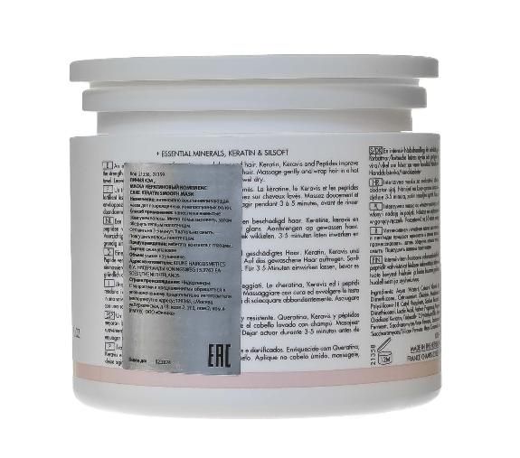 Маска разработана по современным стандартам ухода за волосами. В состав входят высокоактивные компоненты, которые восстанавливают структуру волос изнутри. Придает волосам гладкость, засчет закрытия пористых участков. После применения волосы приобретают невероятную мягкость и здоровое сияние. Маска образует на поверхности волоса пленку, которая защищает локоны от негативных факторов внешней среды и воздействия высоких температур.