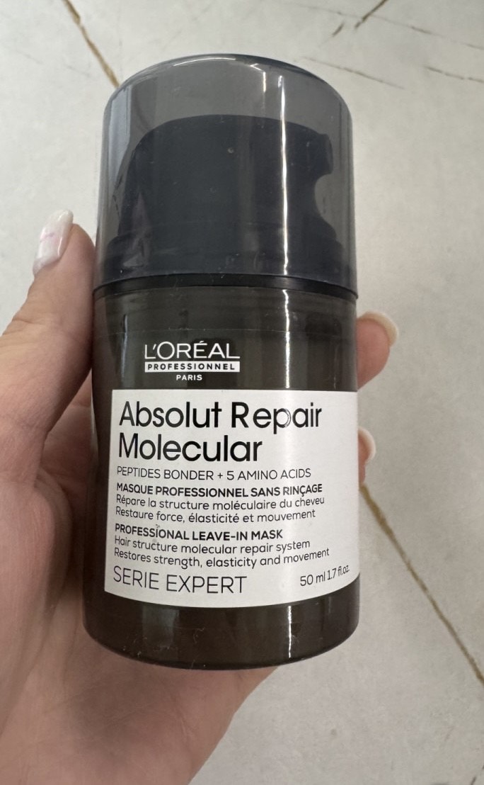 После применения шампуня и смываемой сыворотки Absolut Repair Molecular, нанесите на подсушенные полотенцем волосы. Не смывать. Выполните укладку или высушите естественным способом.