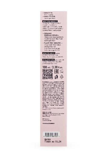 Состав: aqua, cetrimonium chloride, hydrolyzed vegetable protein (plant keratin), hydrolyzed wheat protein, pinus sibirica seed oilwh (organic cedar oil), novosieversia glacialis extract wh (organic arctic rose extract), leontopodium alpinum flower/ leaf extract (organic edelweiss extract), sodium pca, juniperus sibirica needle extract wh (organic juniper extract), pinus sibirica needle extract wh (organic pine extract), rosa canina fruit oil (organic rose hip oil), betula alba leaf extract (organic birch extract), panthenol, amodimethicone, heptyl glucoside, benzyl alcohol, benzoic acid, sorbic acid, citric acid, parfum, benzyl salicylate, coumarin, hydroxycitronellal, linalool, benzyl benzoate, limonene
