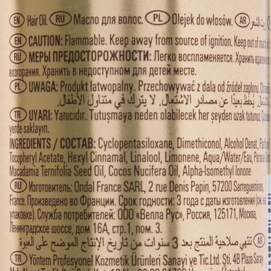 Встряхните перед использованием. Разотрите в ладонях 2-3 капли разглаживающего масла для интенсивного блеска волос. Нанесите по всей длине волос.