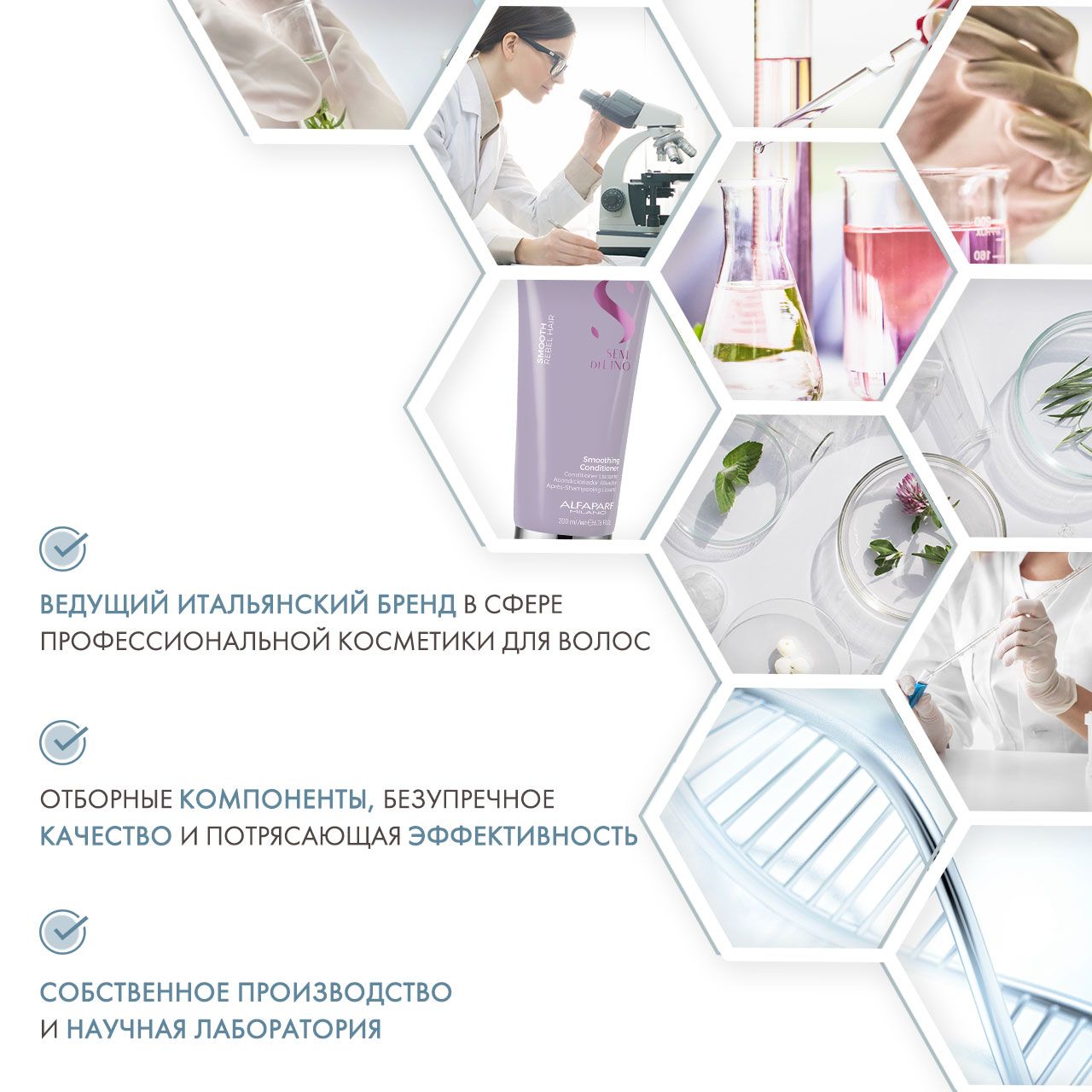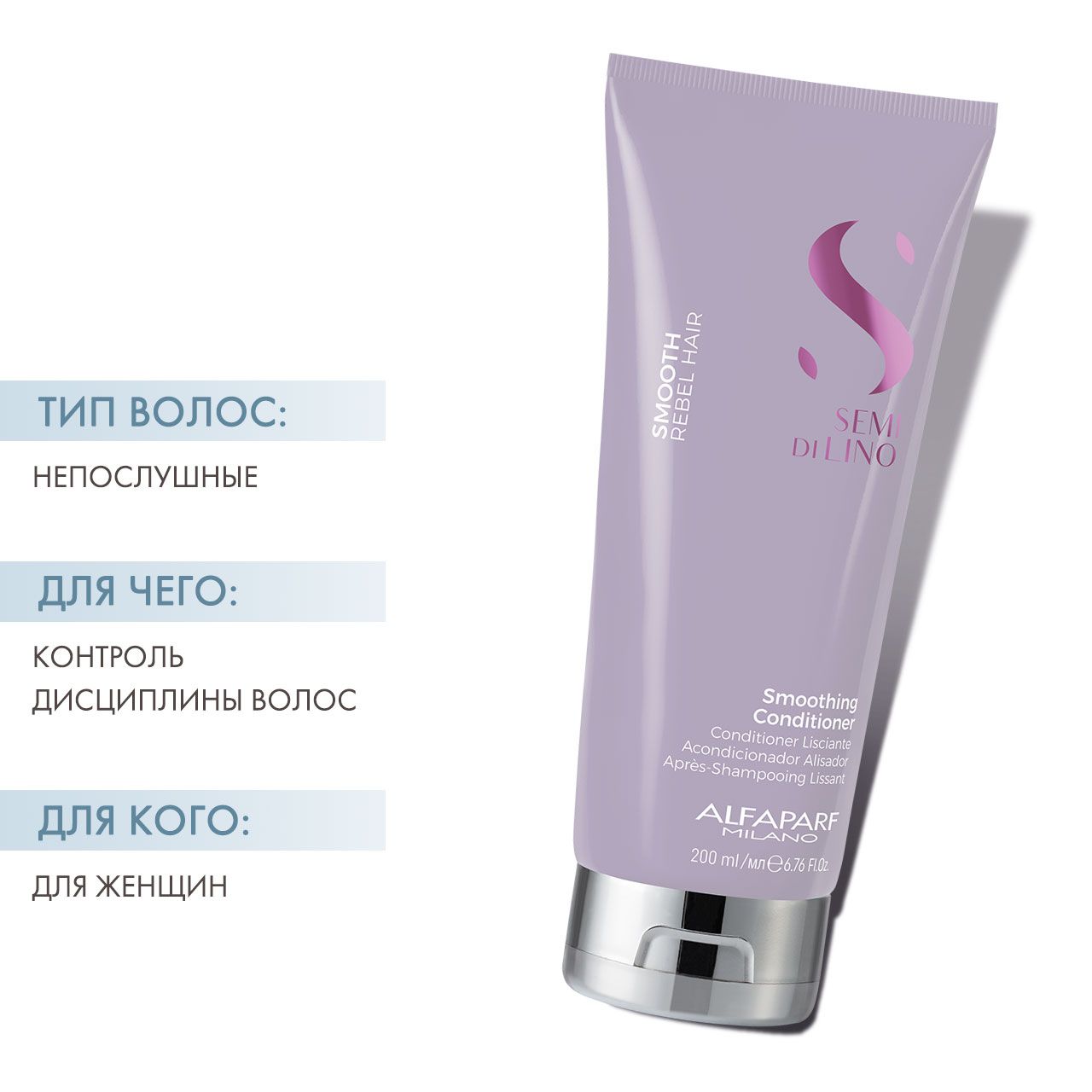 Semi di Lino Smooth (SDL Smoothing) - это средства для непослушных волос, разработанные для эффективного увлажнения, выравнивания структуры, предотвращения пушистости, защиты от негативного воздействия климатических условий и восстанавления естественной красоты волос. Средства предназначены для всех типов волос, как тонких, так и густых, чтобы добиться идеальной гладкости и длительного результата.