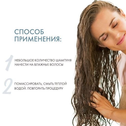 Нанесите небольшое количество шампуня на кожу головы и влажные волосы. Аккуратно помассируйте кожу, затем тщательно смойте теплой водой. Повторите при необходимости. Можно использовать ежедневно.