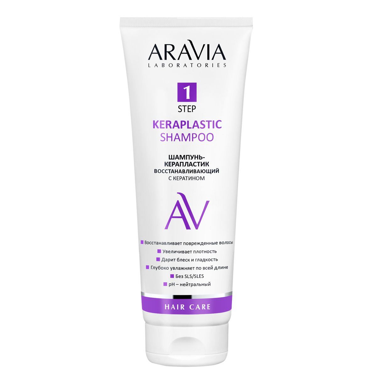 Активы: кератин, д-пантенол. Не содержит SLS и SLES, рН нейтральный.