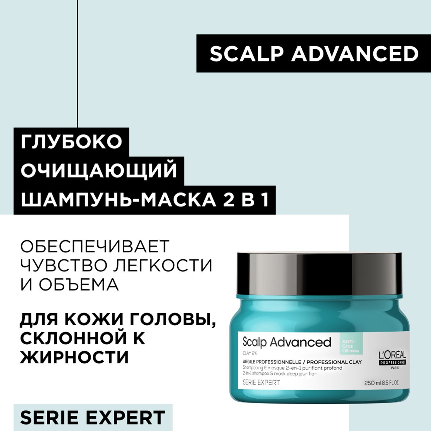 Шампунь-маска Scalp Advanced — мое спасение! Жирность кожи головы сократилась, волосы дольше остаются чистыми. Объема 250 мл хватает надолго, текстура приятная, легко наносится и смывается. После использования волосы мягкие, объемные Эффективно и удобно в применении!