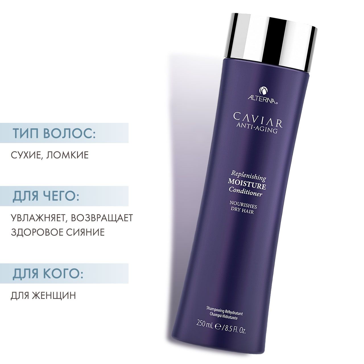 Ультрапитательная формула делает даже самые сухие волосы мягкими и шелковистыми. Уменьшает видимые признаки старения волос и подходит для ежедневного ухода, дарит ощущение бесконечного насыщения влагой, обеспечивает мягкость и эластичность ломким и сухим волосам. Оживляет волосы, придает им здоровый вид, сияние шелка и невероятный блеск.