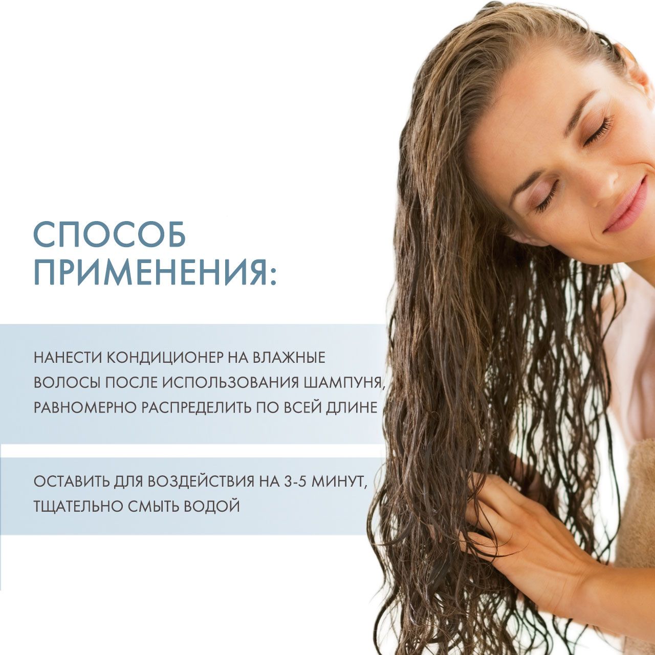 Распылить на чистые влажные волосы. Выполнить укладку. Также для тонких волос можно использовать вместо обычного кондиционера, или как дополнительный кондиционер для средних и толстых волос.