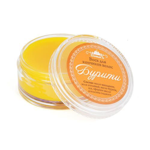 Воск для кончиков волос Бурити — прекрасное вспомогательное средство в повседневном уходе за волосами. Мы постоянно сталкиваемся с неблагоприятными факторами окружающей среды, которые вызывают сухость, ломкость, расщепление волос и в итоге приводят к секущимся кончикам. Основным компонентом воска является масло бурити — источник аминокислот, витаминов, каротина, а также незаменимых жирных кислот. Восстанавливает структуру, возвращает жизненные силы и здоровье тусклым, сухим и ломким волосам, препятствует выведению влаги. Особенно рекомендуется для окрашенных волос. Создает на поверхности волоса ультратонкий слой, который одновременно сохраняет полезные вещества и защищает от негативного внешнего воздействия. Эфирное масло апельсина сладкого обладает сладким, тёплым, позитивным ароматом, поднимает настроение. Летучие вещества в его составе встраиваются в структуру волос, поддерживая их красоту и здоровье. Благодаря исключительно натуральному составу воск для волос закрывает волосяные чешуйки, питает, укрепляет волосы, облегчает расчесывание и укладку, придает волосам блеск и здоровый вид.