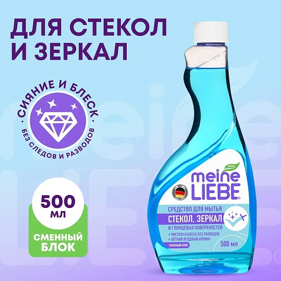 Средство для мытья стекол, зеркал и глянцевых поверхностей, сменный блок 500 мл
