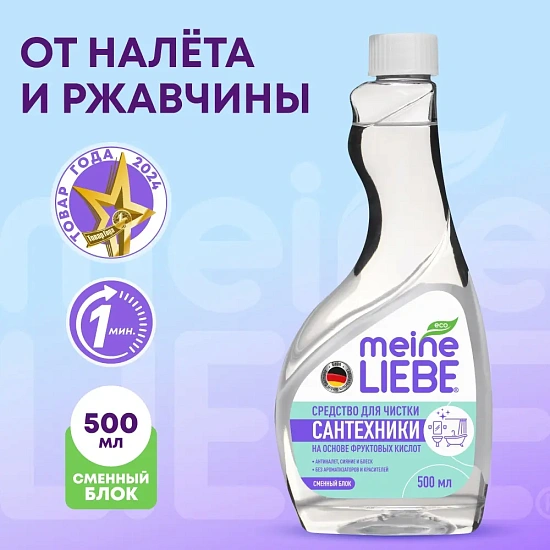 Чистящее средство для сантехники без хлора на основе фруктовых кислот, сменный блок 500 мл