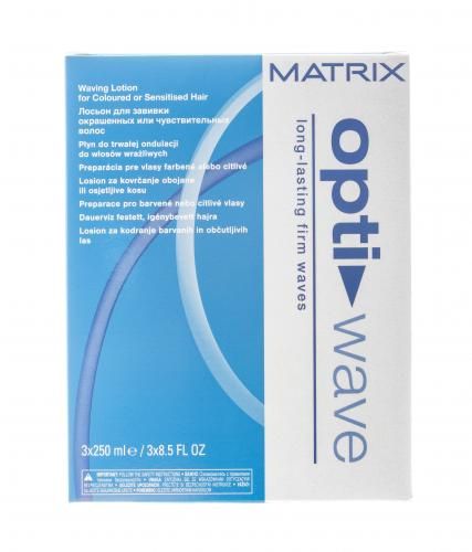 Opti.Wave - гамма продуктов Matrix, предназначенная для стойкой завивки волос длительного действия. Лосьон Opti.Wave (Опти.Вейв) предназначен для стойкой завивки или выпрямления волос длительного действия, при этом деликатно воздействует на структуру волоса. Предназначен как для создания "долговременной укладки", так и для стойких кудрей. После нанесения лосьона необходимо использовать фиксатор химической завивки. Рекомендован для сухих волос.