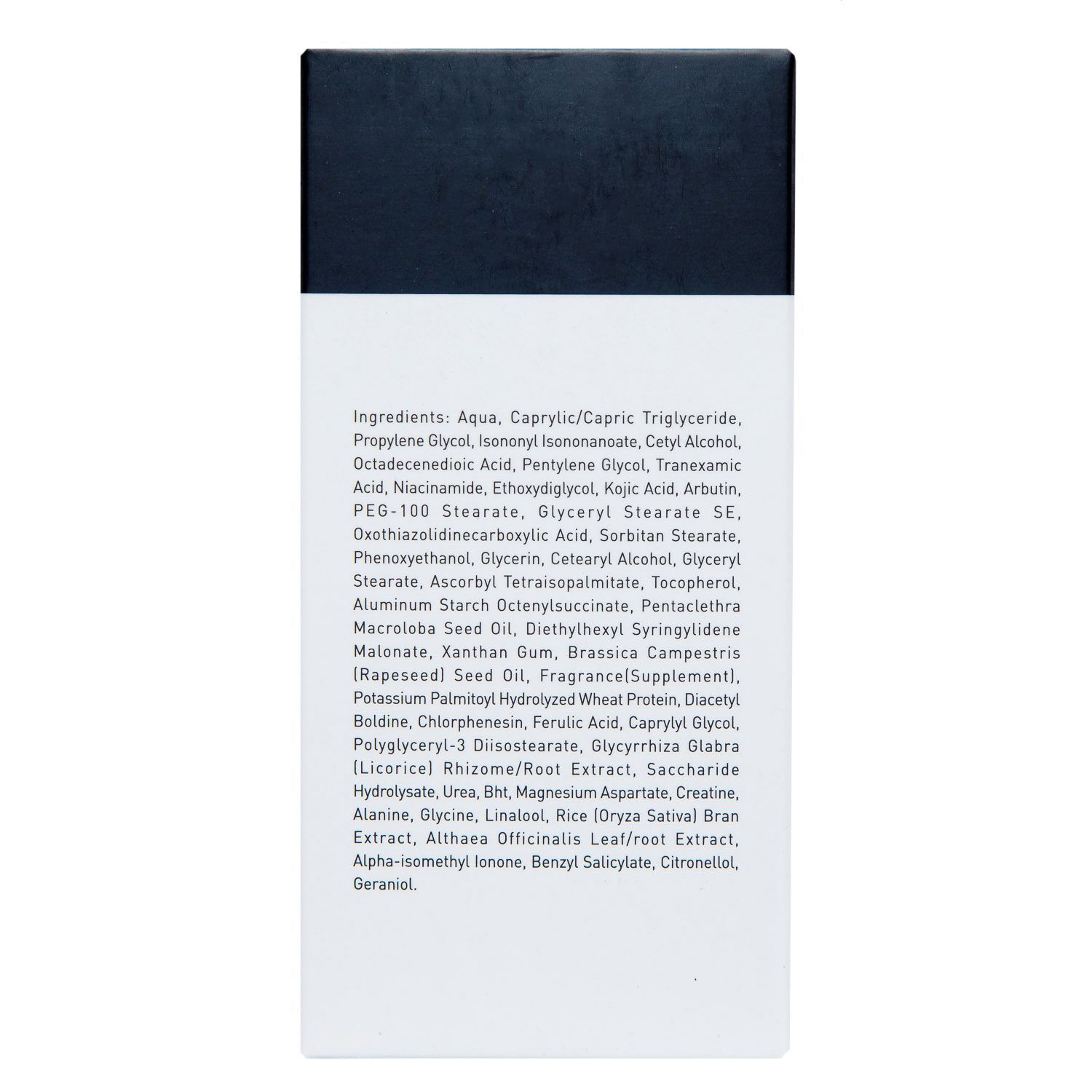 Активы: октадеценедиоиковая кислота, транексамовая кислота, Pentaclethra macroloba, арбутин, мочевина, экстракт бурого риса, экстракт рапсового масла, феруловая кислота.