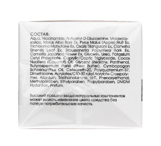 Натуральные экстракты яблока, камелии японской, камелии синензис, кислицы треугольной, центеллы азиатской, гриба матсутаке, шелковичного дерева, бумажного дерева, ниацинамид, N-ацетилглюкозамин, пантенол, аллантоин, масла ши, кокоса.