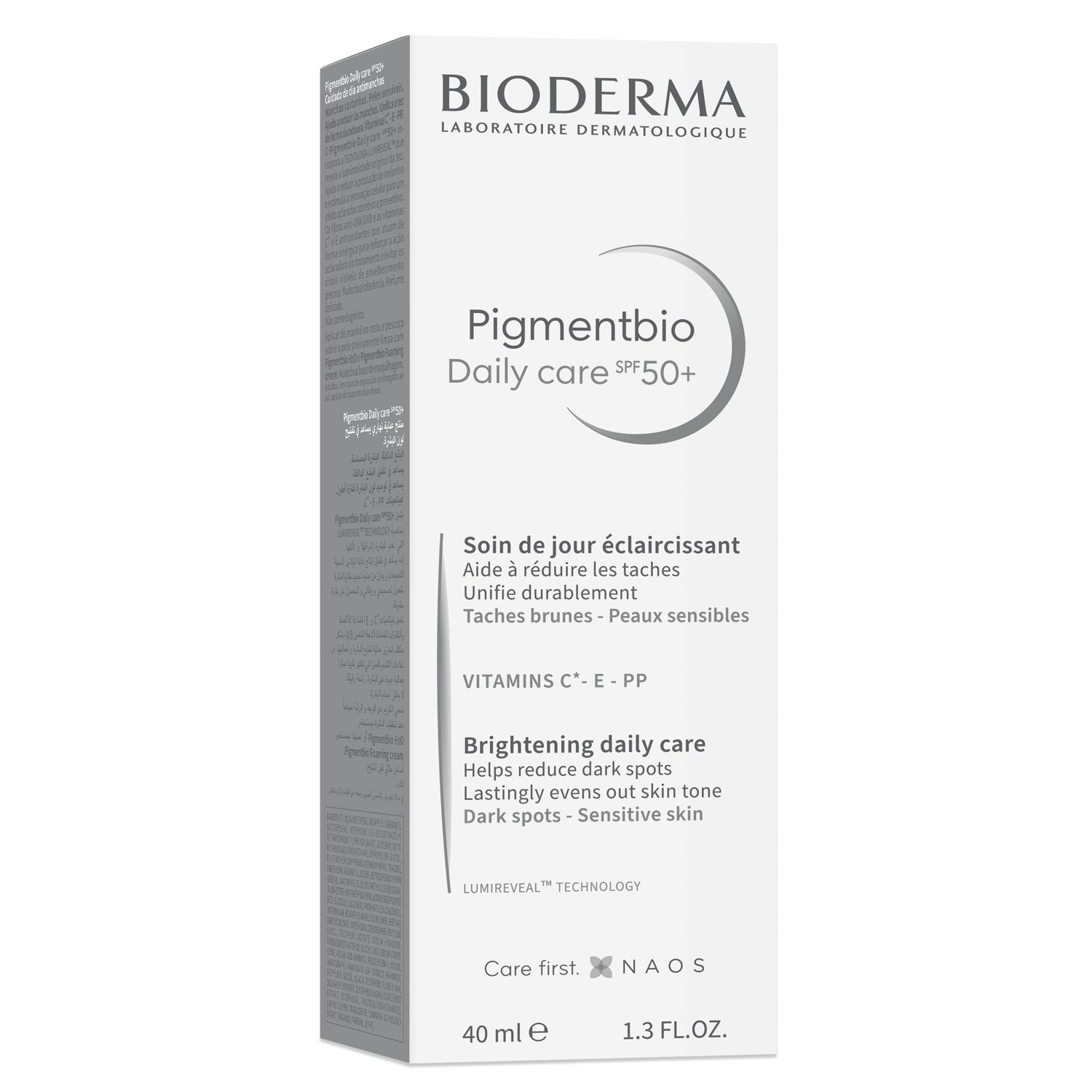 Осветляющий крем для чувствительной кожи с гиперпигментацией содержит комплекс компонентов Lumireveal Tm Technology, учитывающий передовые способы восстановления естественного сияния кожи, применяемые дерматологами. Благодаря этому комплексу снижается выработка меланина, ускоряется обновление клеток и пигментные пятна осветляются. Может применяться как профилактическое средство, в случае предрасположенности к появлению гиперпигментации.