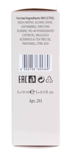 Состав: aqua, alcohol denat., ichthammol, piroctone olamine, peg-40 hydrogenated castor oil, melaleuca alternifolia oil, panthenol, citric acid