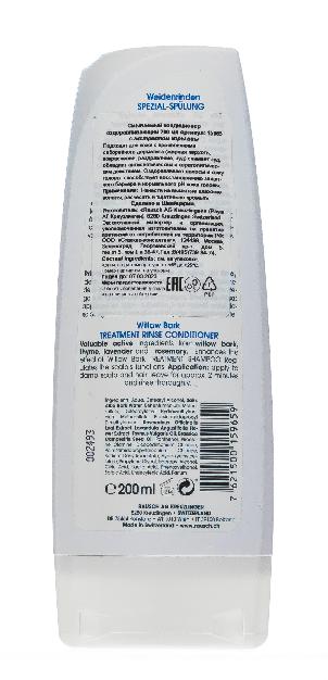 Смываемый кондиционер с корой ивы усиливает эффект от оздоравливающего шампуня. Сокращает жирную перхоть, снимает покраснение и зуд. Восстанавливает собственные защитные функции кожи головы. Облегчает расчесывание. Наносить так же на кожу головы. Дистиллят коры ивы - антисептический и кератолитический эффект. Масло тимьяна- дезинфицирующее и противозудное. Экстракт розмарина оказывает тонизирующее и стимулирующее действие.