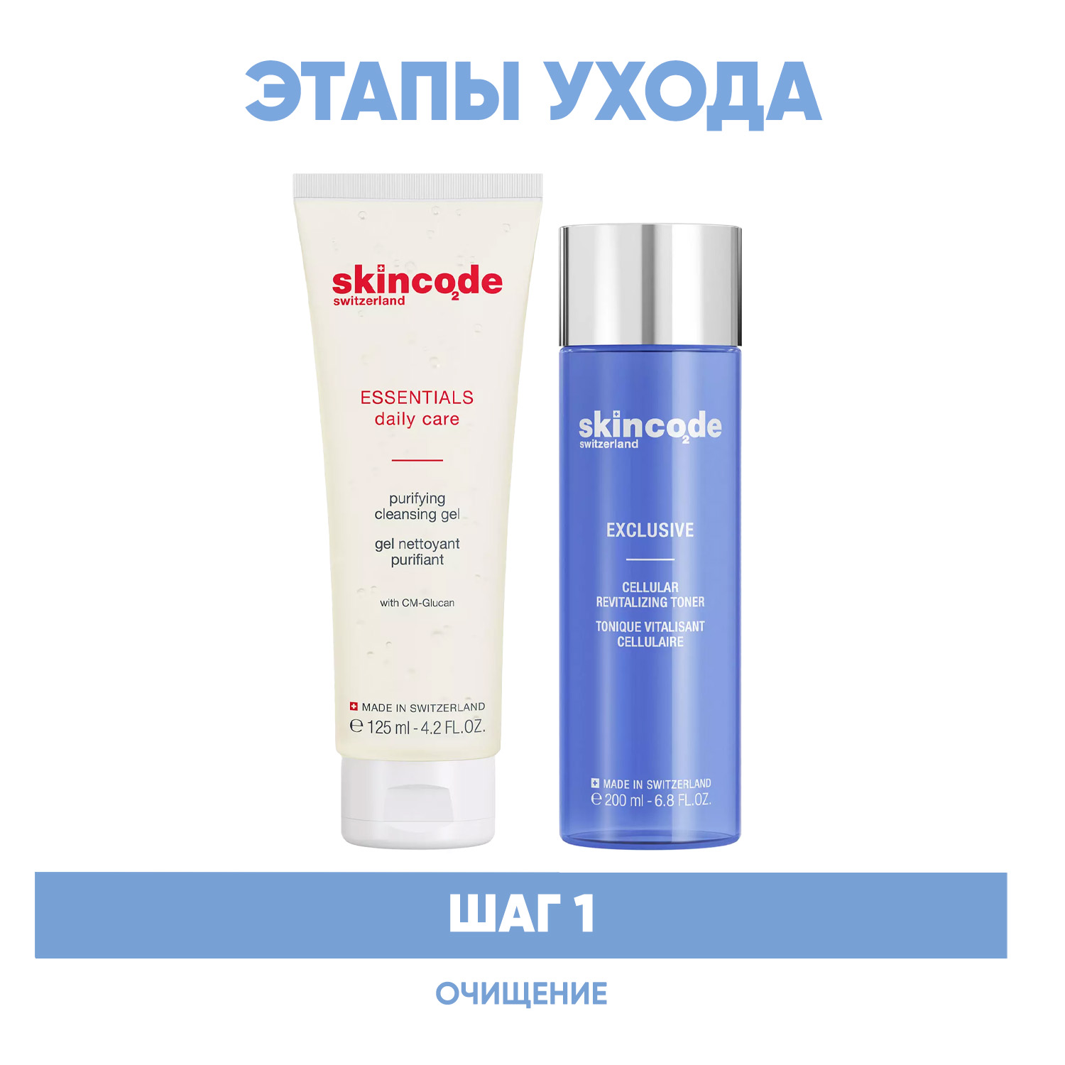 Эксперты проекта «Космедэль»* предлагают ПРОГРАММУ КОМПЛЕКСНОГО УХОДА Skincode Exclusive для борьбы с признаками старения лица. Комплексный уход представляет собой дополняющие друг друга средства, совместное использование которых будет максимально эффективным. Первым шагом такой программы всегда является очищение. Вторым - основной уход, а третим - дополнительный уход.