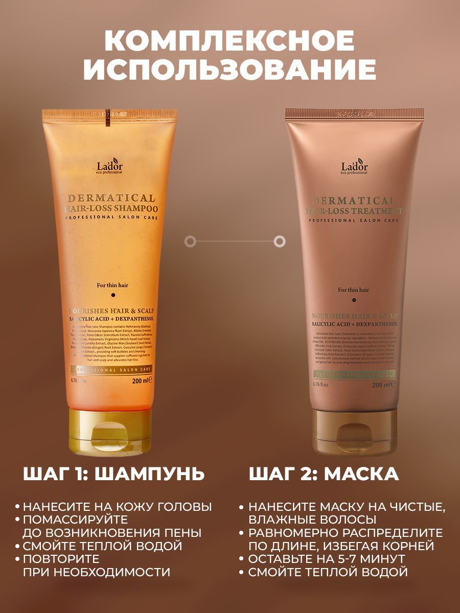 Промокните вымытые волосы полотенцем. Нанесите укрепляющую маску для тонких волос Dermatical Hair-Loss Treatment For Thin Hair от La`dor по всей длине прядей. Мягко помассируйте голову, оставьте на 10–15 минут. Затем тщательно ополосните волосы водой.