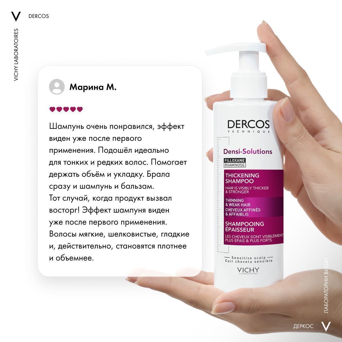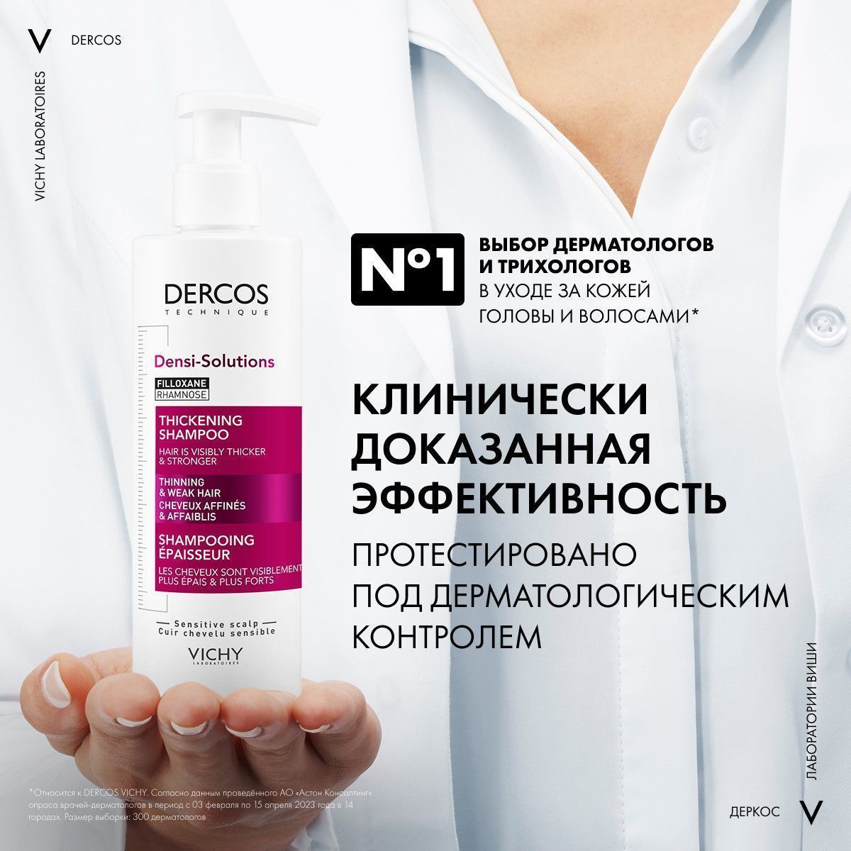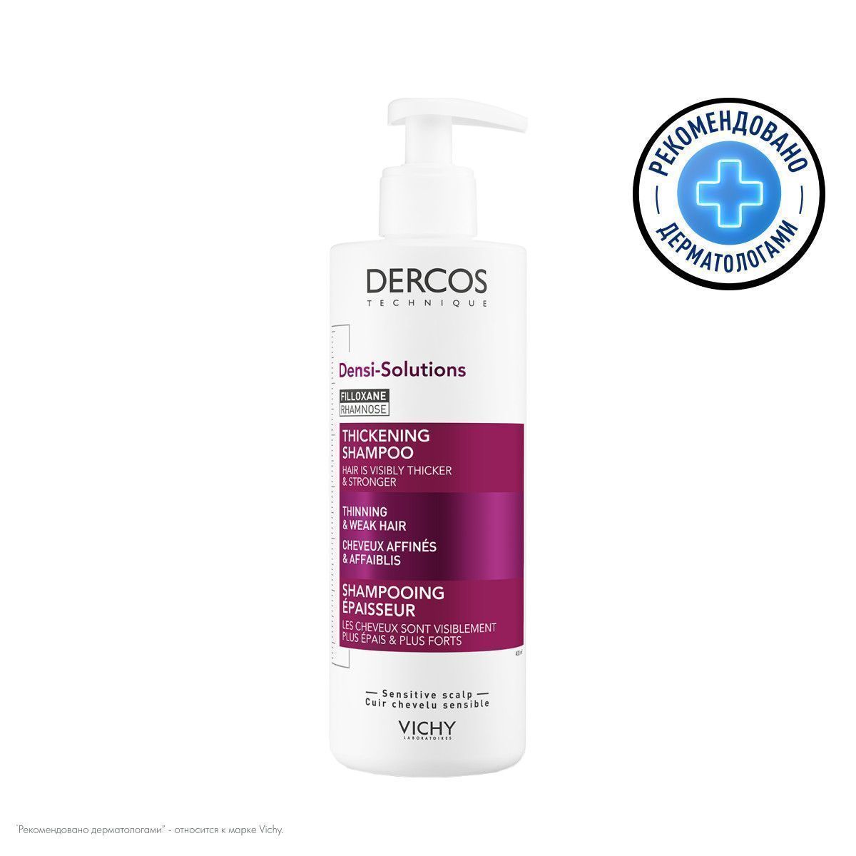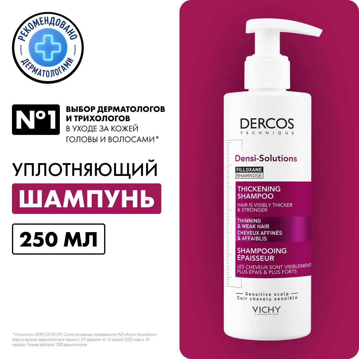 Dercos Densi-Solutions - инновационная гамма средств по уходу за волосами, которая комплексно борется со всеми аспектами проблемы истончения волос. Сыворотка увеличивает количество волос, шампунь повышает плотность, а бальзам восстанавливает структуру волос.