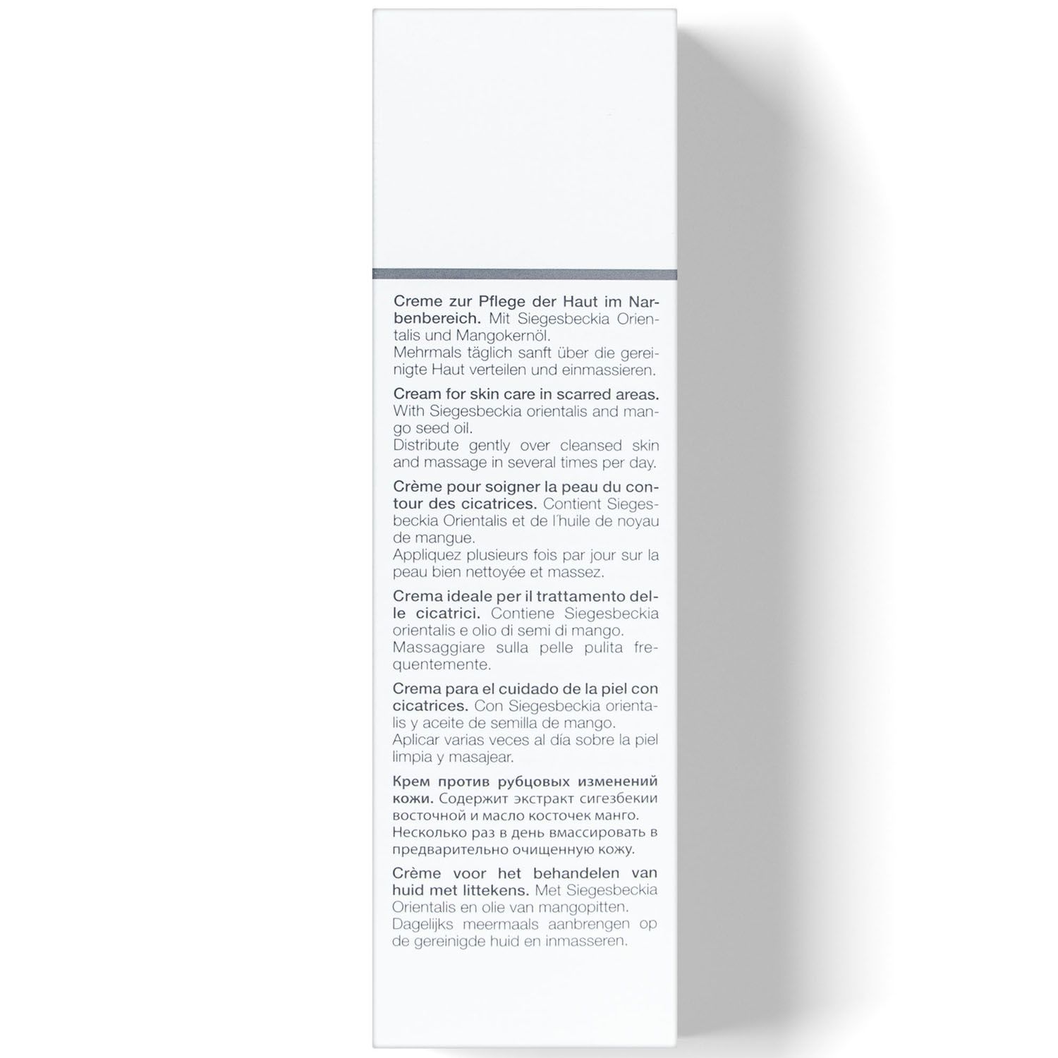 Крем с комплексом растительных экстрактов качественно улучшает состояние кожи в местах рубцовых изменений кожи, снимая воспаление, перестраивая поврежденный коллагеновый матрикс дермы, стимулируя образование здоровых коллагеновых и эластиновых волокон. Смягчает кожу и обеспечивают лучшее проникновение активных ингредиентов.