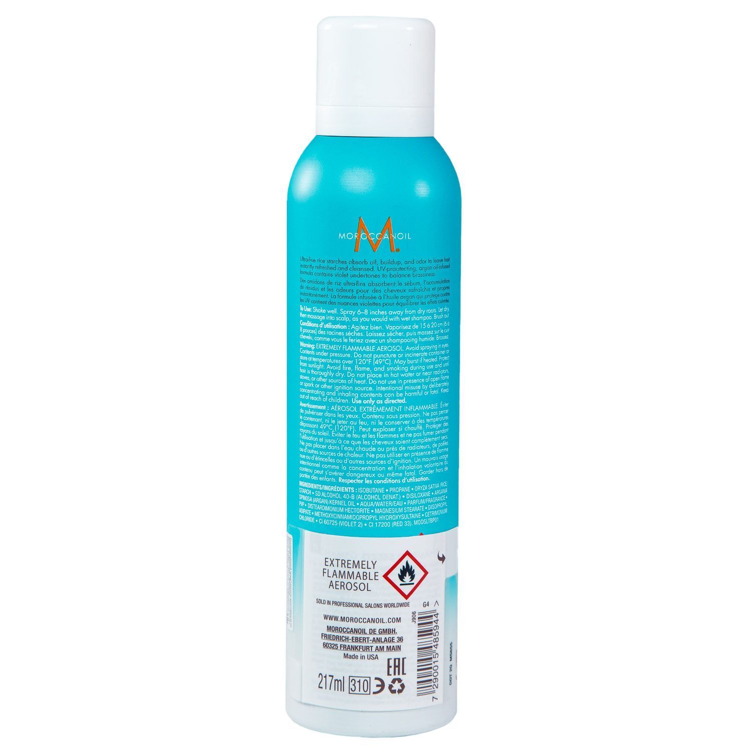 Сухой шампунь Moroccanoil – это очищающий спрей, который мгновенно освежает и оживляет волосы и кожу головы, чтобы продлить жизнь вашей укладки. Входящие в его состав ультра-тонкие рисовые крахмалы делают спрей мощным очищающим средством, которое мгновенно впитывает жир и остатки стайлинговых средств, не оставляя тусклых следов.