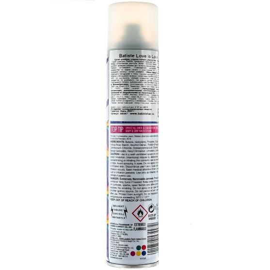 Шампунь Batiste Love is Love сухой - идеален для использования, когда у вас нет времени мыть голову обычным шампунем, когда у вас много других дел, когда ваша жизнь – сплошной круговорот событий. Сухой шампунь быстро и эффективно абсорбирует грязь и жир, тем самым очищая волосы.
